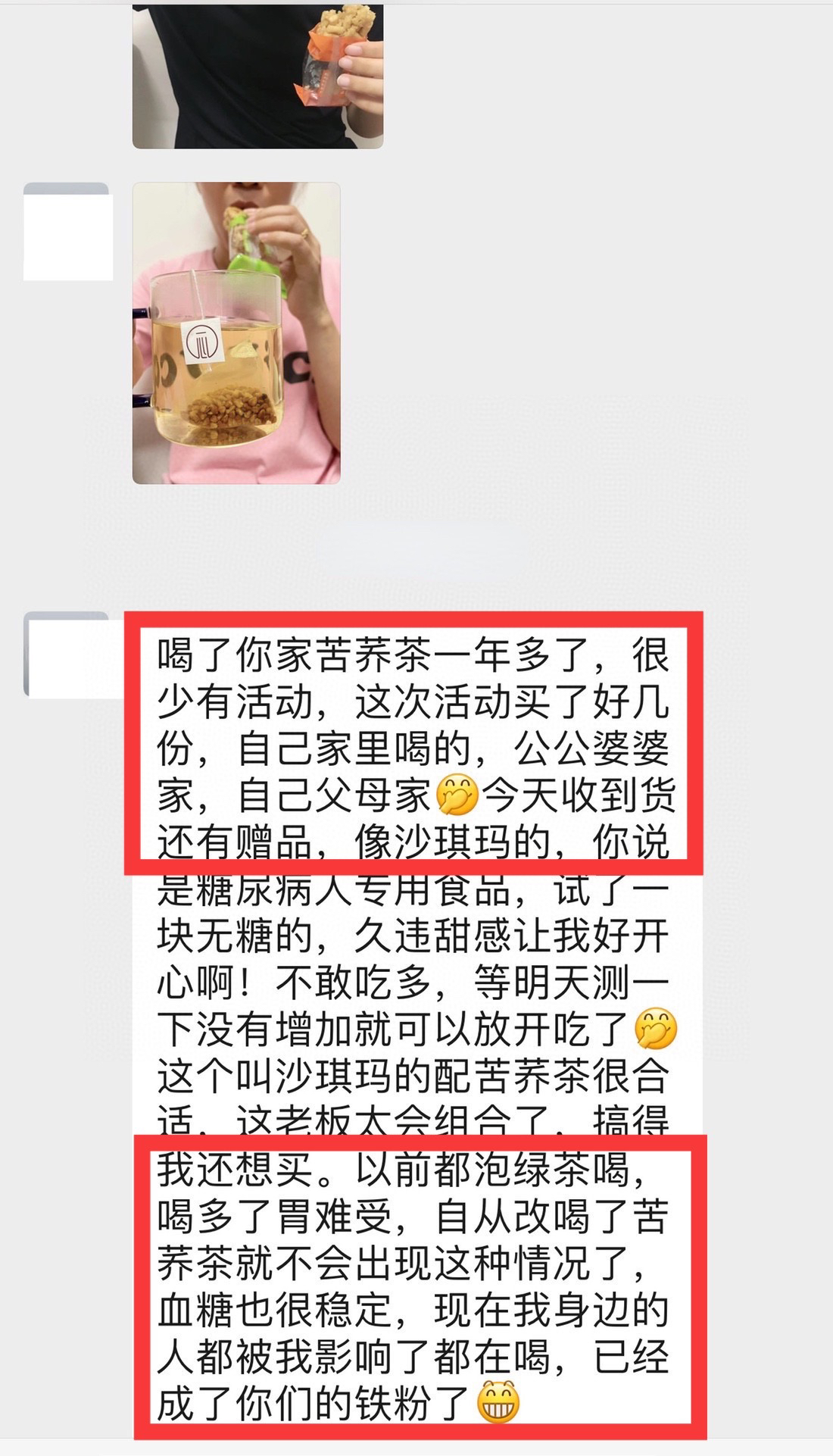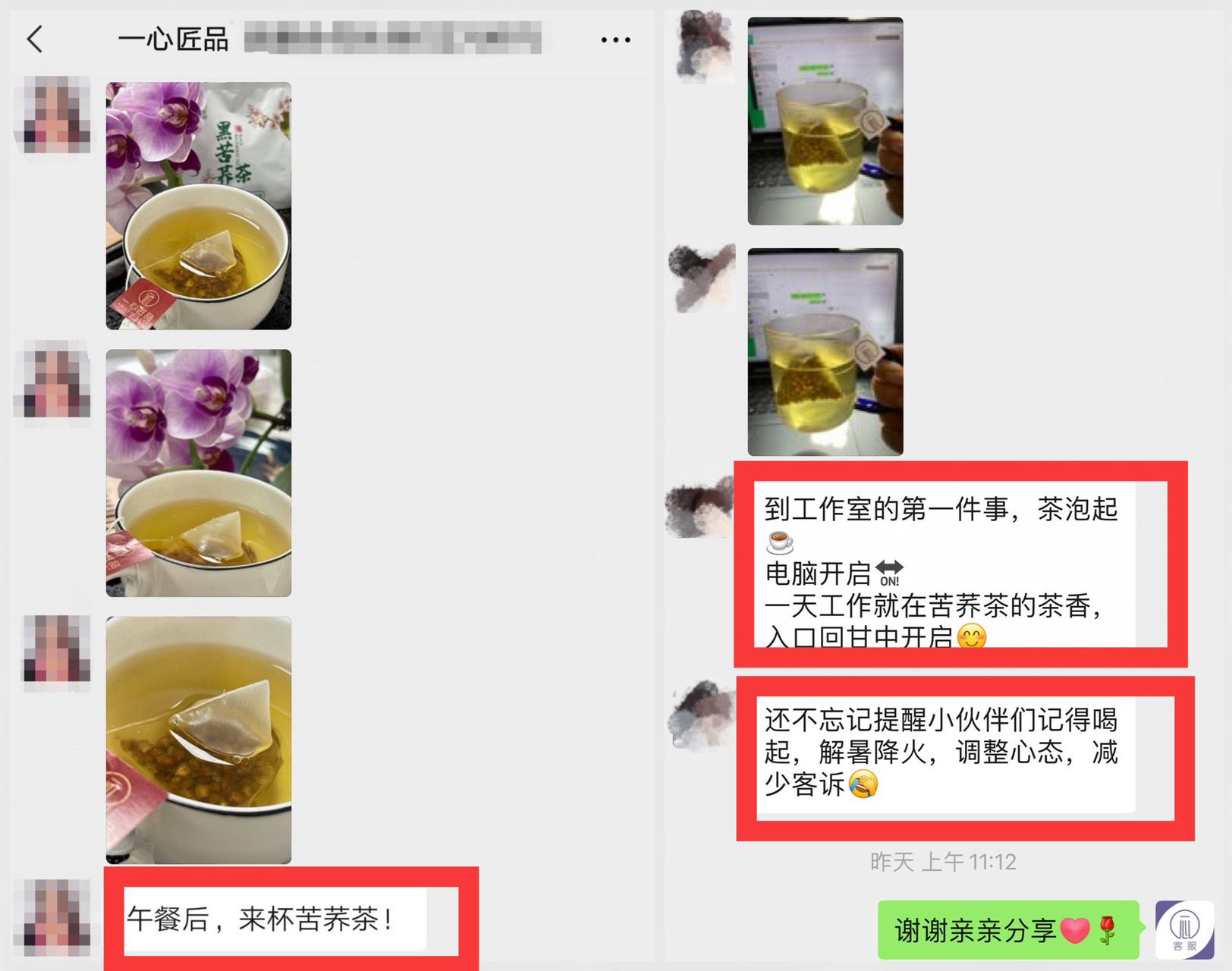 切身感受到苦荞茶对身体好处,同时也分享给身边的亲朋好友
