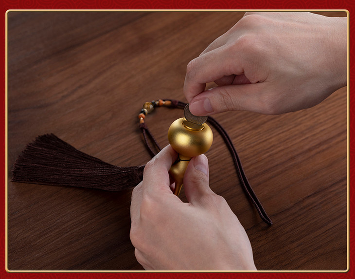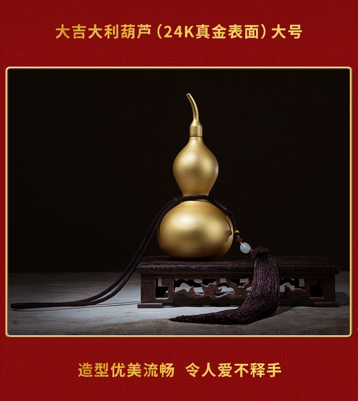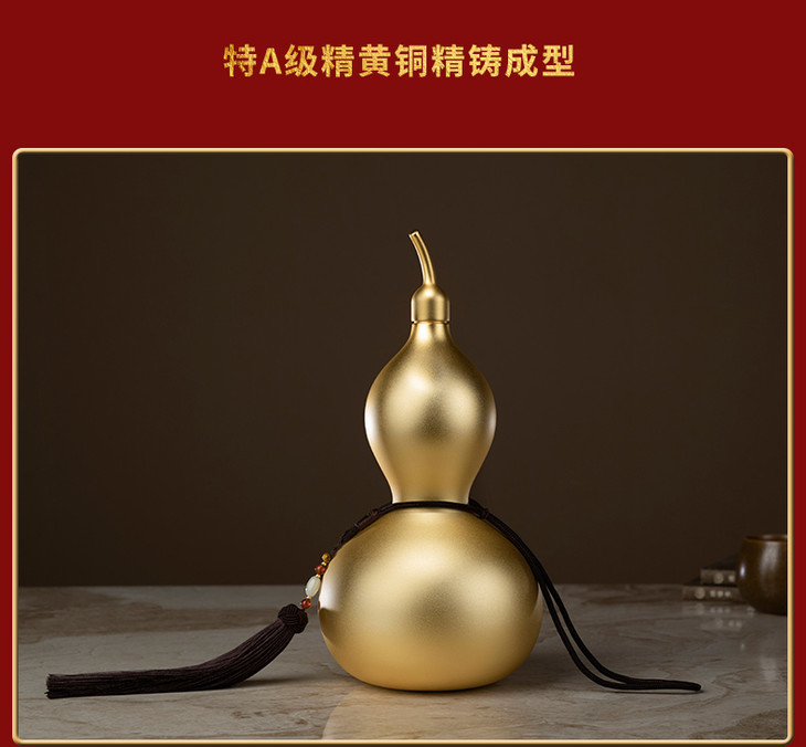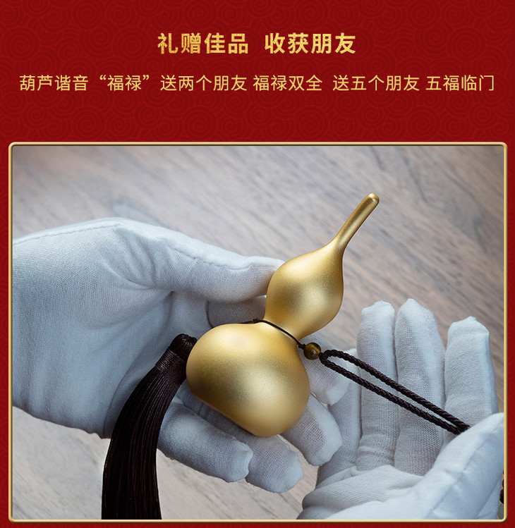 铜师傅 全铜真金鎏镀挂件 《大吉大利葫芦》铜葫芦 家居饰品 礼物