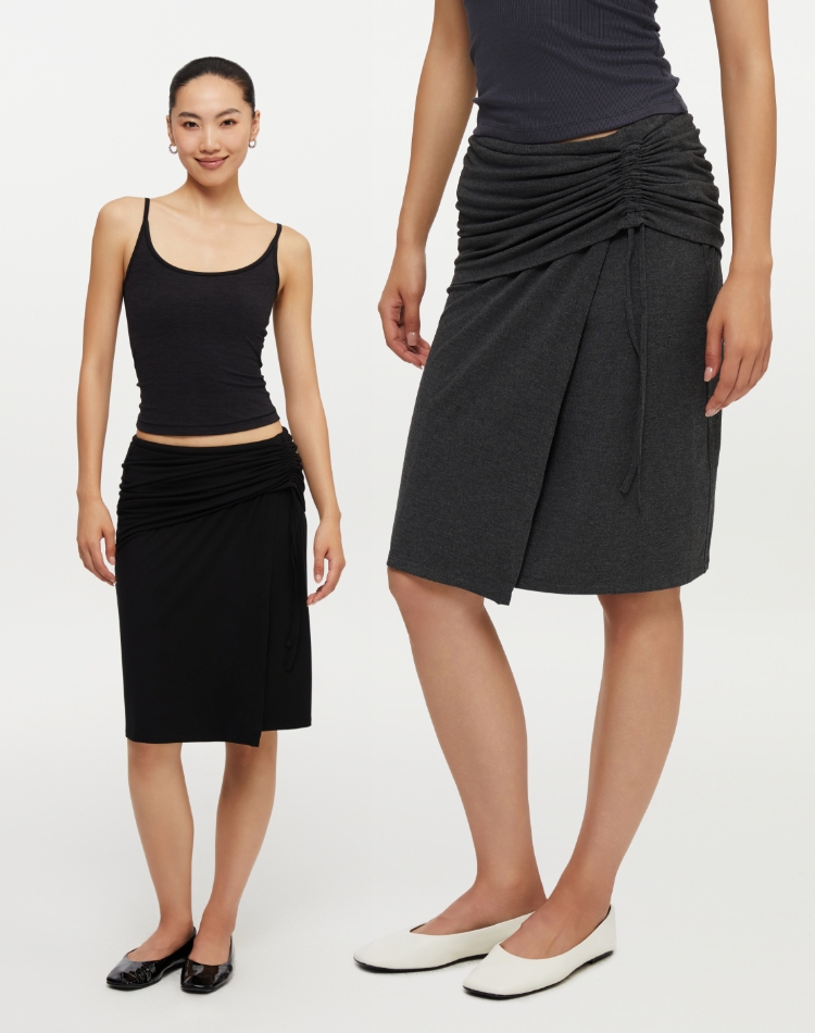 oneup垂感抽绳半身裙