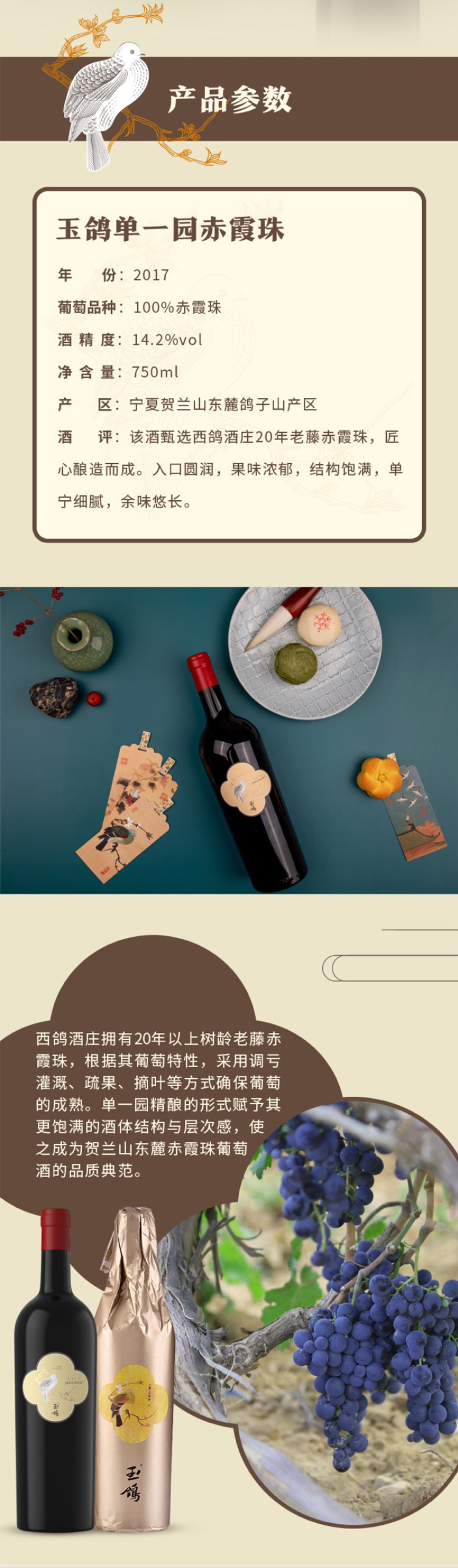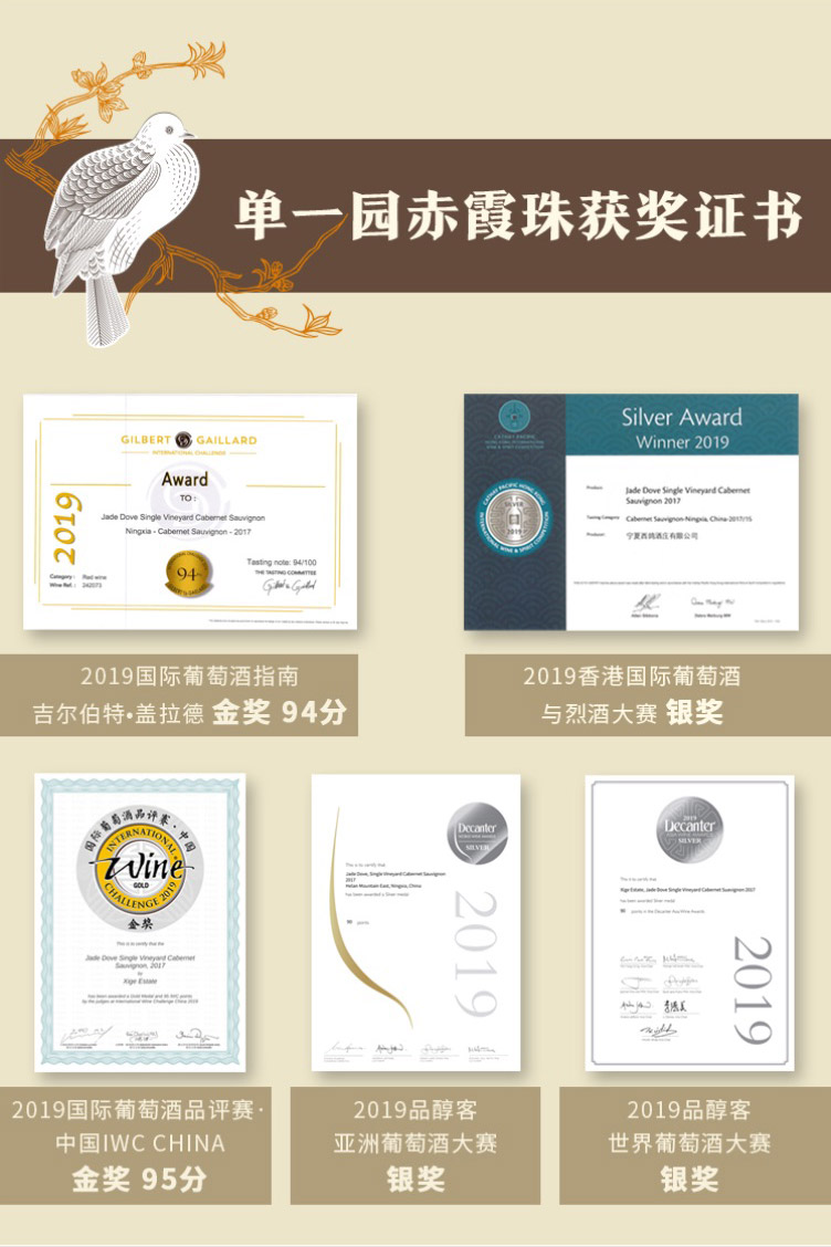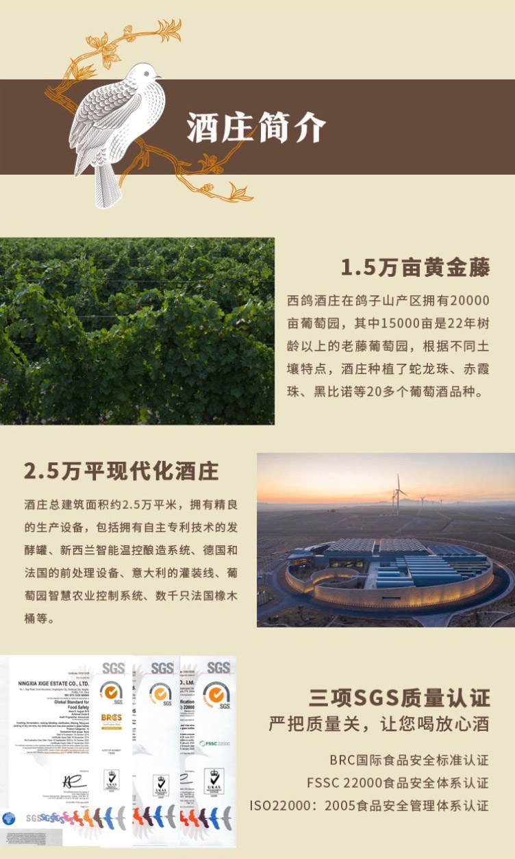 玉鸽单一园赤霞珠干红葡萄酒