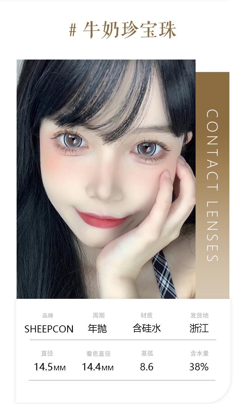 SHEEPCON 牛奶珍宝珠 年抛 2片装 14.5mm 着色14.4mm