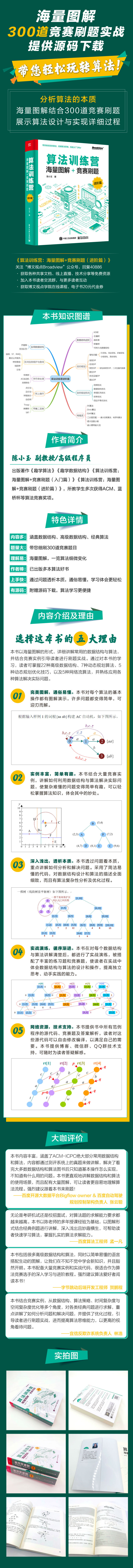 本书以海量图解的形式,详细讲解常用的数据结构与算法,并结合竞赛实例引导读者进行刷题实战。通过对本书的学习,读者将掌握22种高级数据结构、7种动态规划算法、5种动态规划优化技巧,以及5种网络流算法,并熟练应用各种算法解决实际问题。 本书总计8章。第1章讲解实用数据结构,包括并查集、优先队列;第2章讲解区间信息维护与查询,包括倍增、ST、RMQ、LCA、树状数组、线段树和分块;第3章讲解字符串处理,包括字典树、AC自动机和后缀数组;第4章讲解树上操作问题,包括点分治、边分治、树链剖分和动态树;第5章讲解各种平衡二叉树,包括Treap、伸展树和SBT;第6章讲解数据结构进阶,包括KD树、左偏树、跳跃表、树套树和可持久化数据结构;第7章讲解动态规划及其优化,包括背包问题、线性DP、区间DP、树形DP、数位DP、状态压缩DP、插头DP和动态规划优化方法;第8章讲解网络流问题,包括常用网络流算法、二分图*大匹配、*大流*小割定理和*小费用*大流。本书对每个算法都进行详细图解并搭配竞赛实例,重点讲解如何分析问题、优化算法,以期读者在短时间内掌握该算法并进行刷题实战。