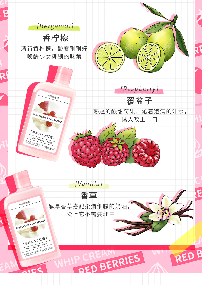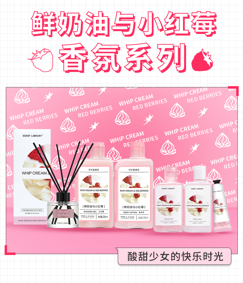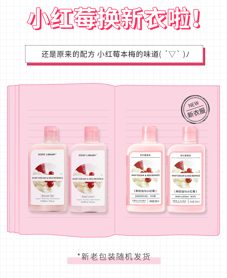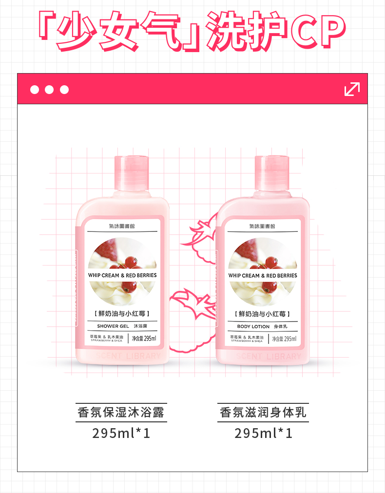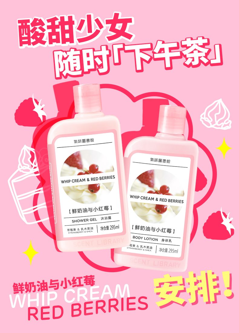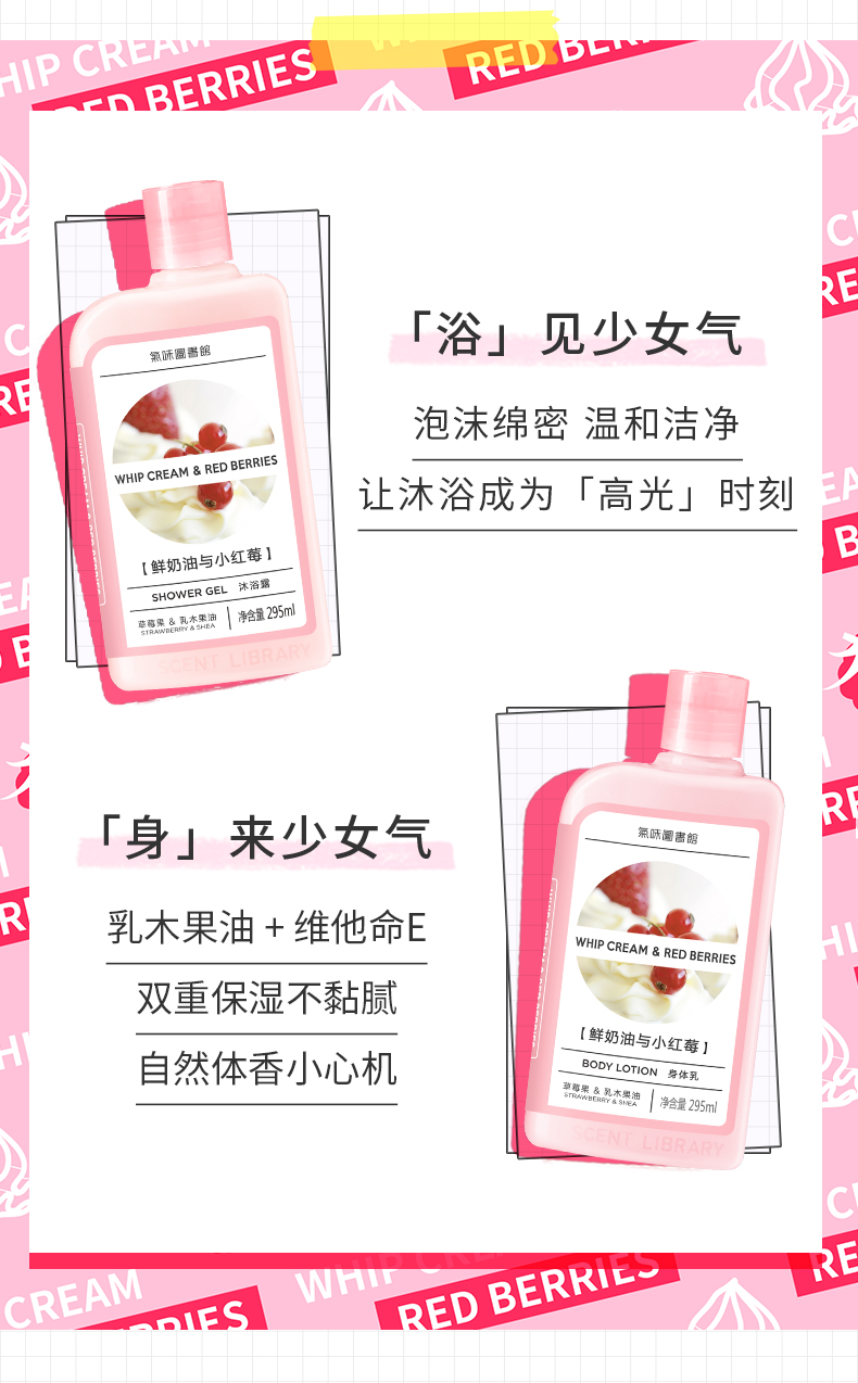 【人气洗护】气味图书馆鲜奶油与小红莓香氛身体洗护(沐浴露295ml/身体乳215ml)