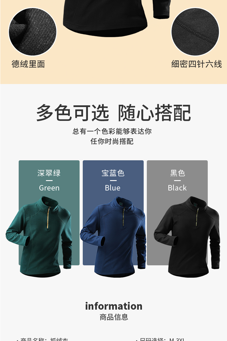 【精选】01E STATION户外半拉链抓绒外套(3色可选) 时尚百搭德容黑科技锁温保暖透气不闷防刮耐磨