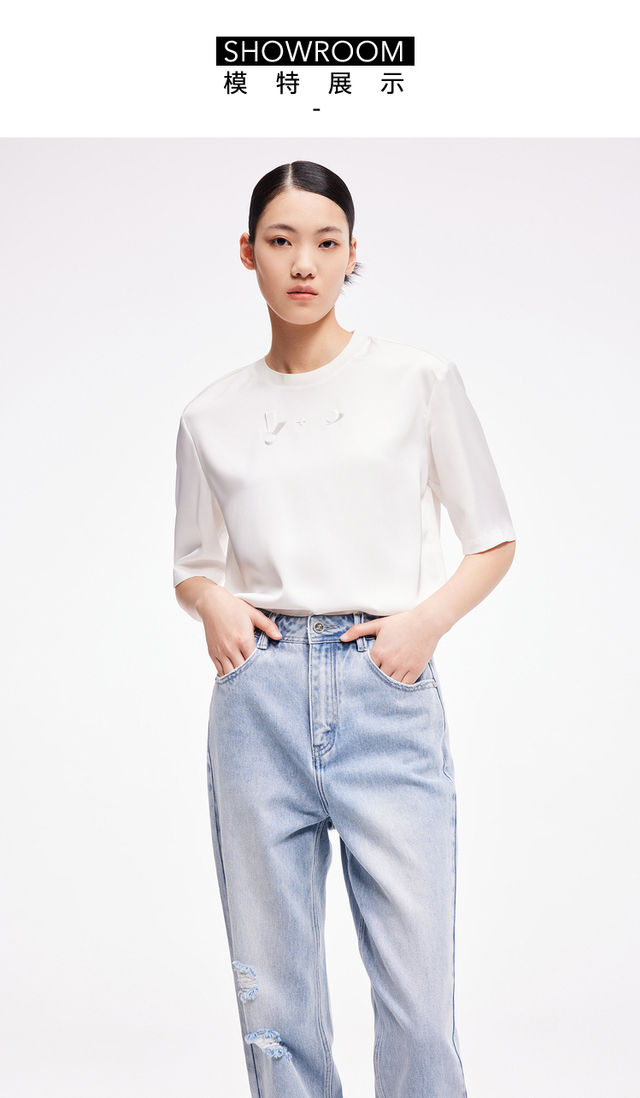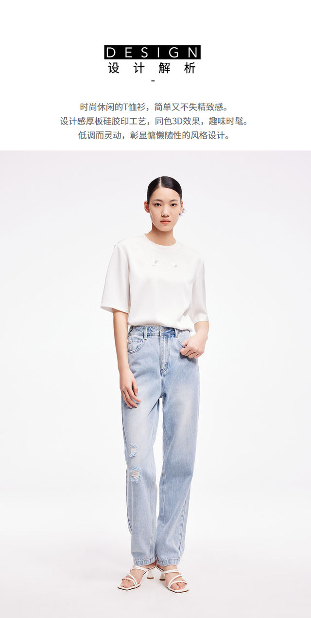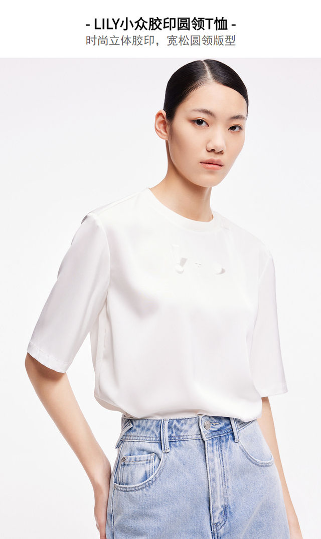 LILY2022夏新款女装时尚休闲小众设计感宽松短袖T恤122230C8147