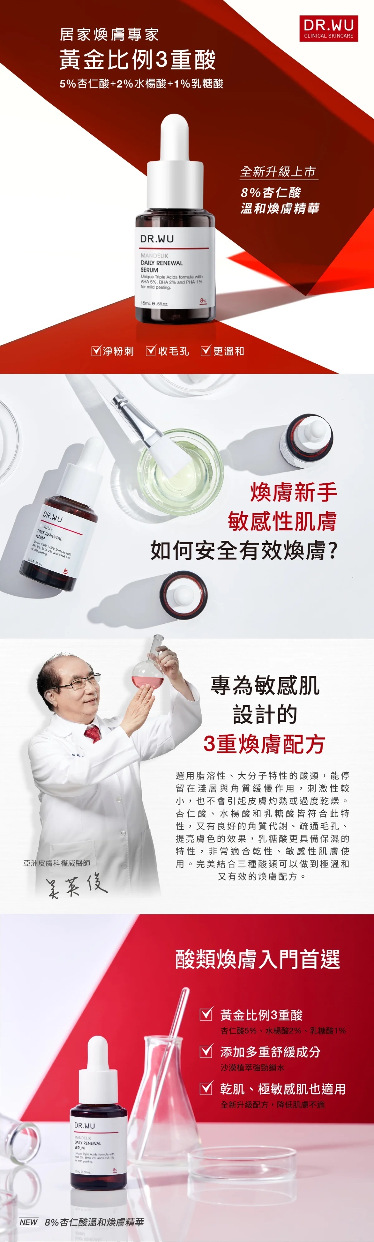 港版达尔肤DR.WU杏仁酸温和焕肤精华8% 15亳升