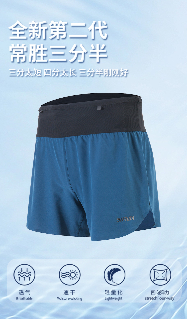 速力达常胜二代跑步短裤男 3.5寸速干透气越野马拉松训练超轻腰包短裤