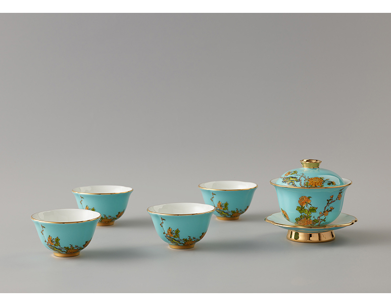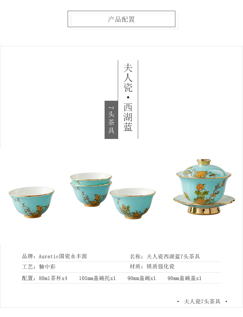 永丰源夫人瓷西湖蓝6头茶具