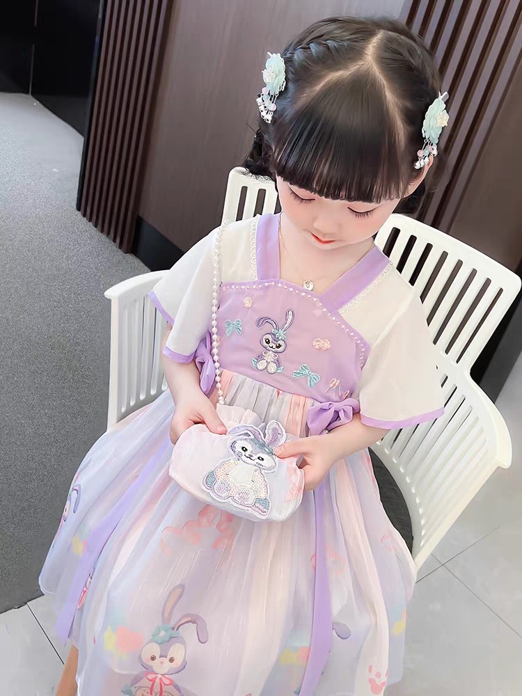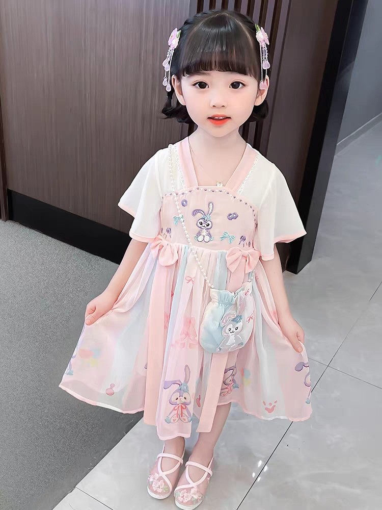 送头饰+绣花包【超仙~古装连衣裙】2023新款汉服,女童中国风,春夏季唐装,儿童超仙古装连衣裙,古风襦裙-SH