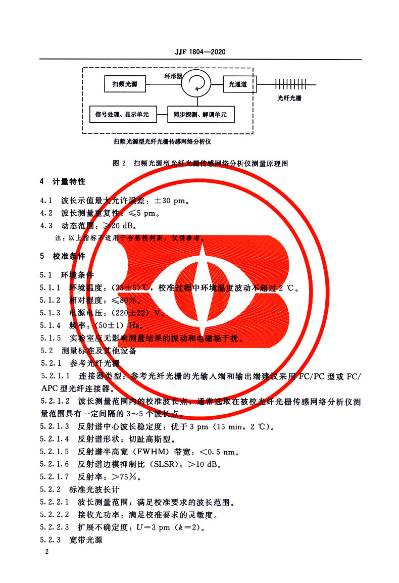 | JJF 1804-2020 布拉格光纤光栅传感网络分析仪校准规范 | ||