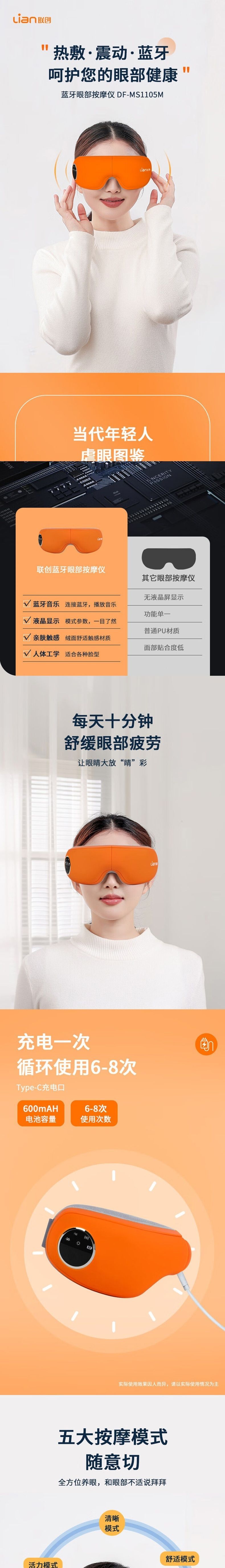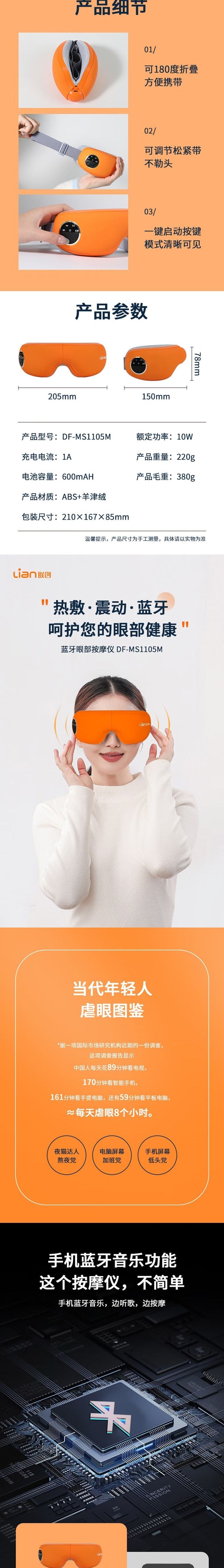 联创 蓝牙眼部按摩仪 DF-MS1105M 智能护眼仪气囊热敷音乐眼罩