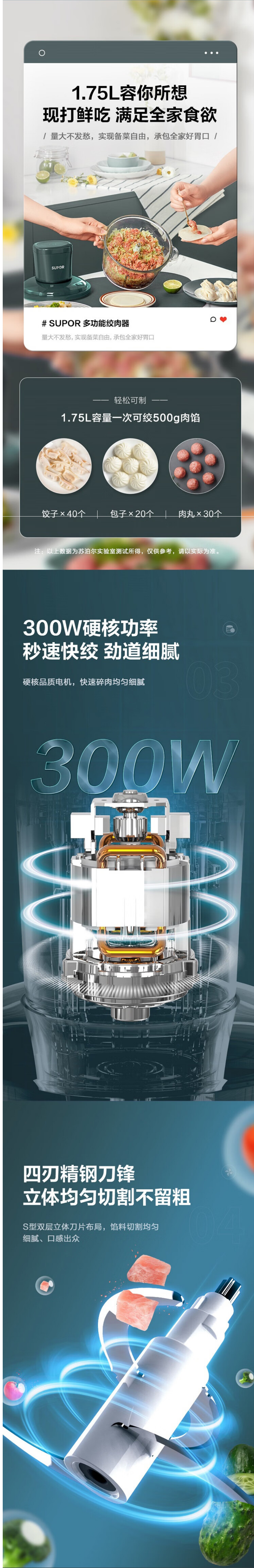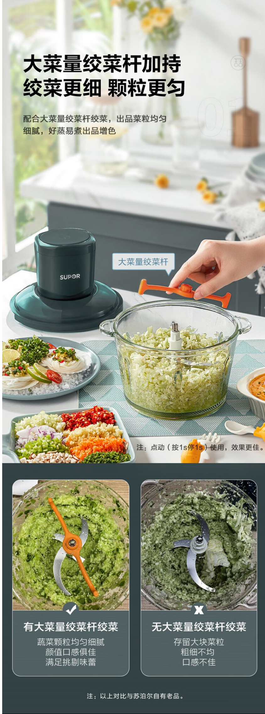 苏泊尔(SUPOR)ZMD安心系列 升级搅菜杆 花样速搅 辅食 易洗实心短轴 双层四刃精钢刀锋 绞肉机JRD05-U 京东万商(仅限保定地区发货)