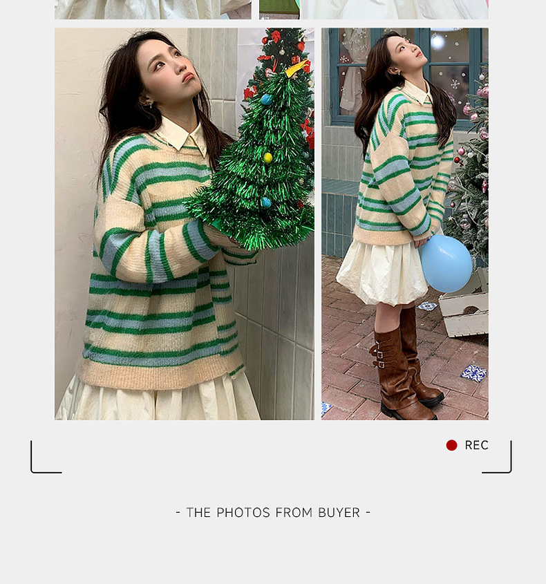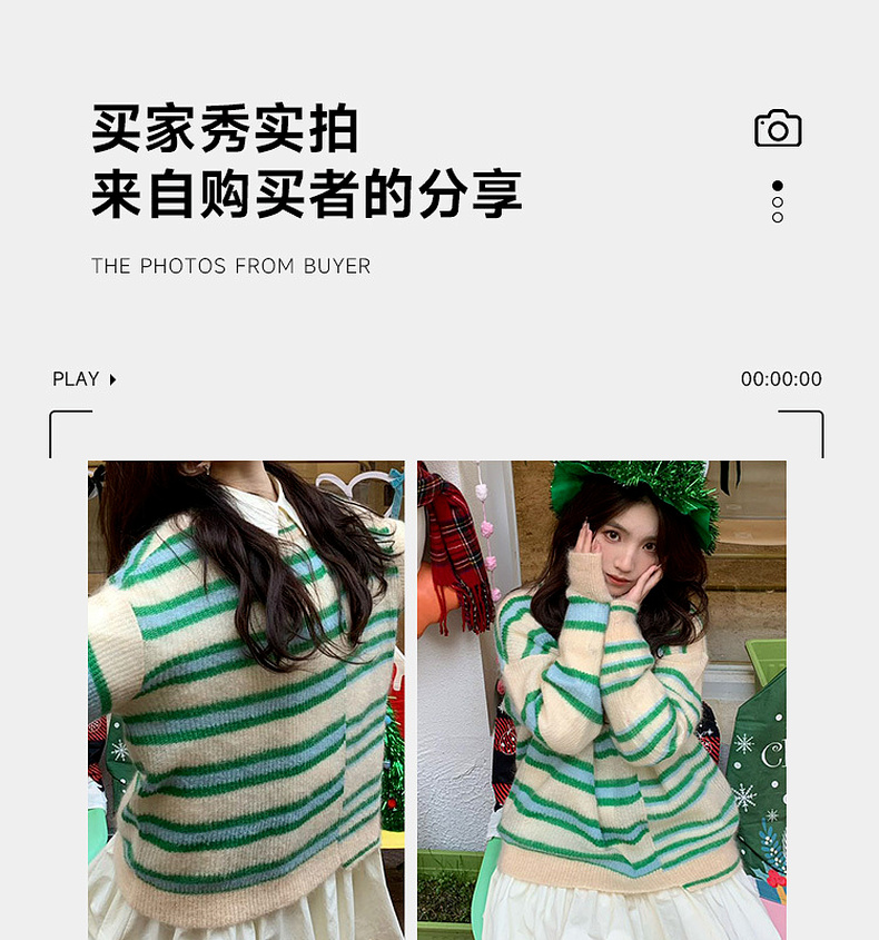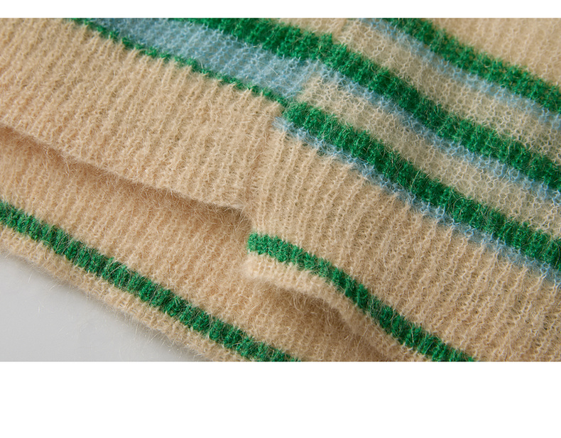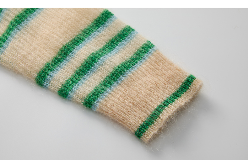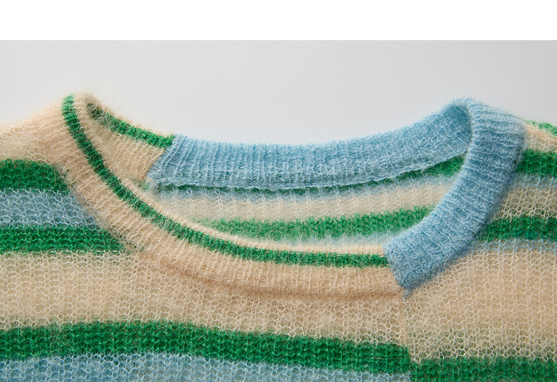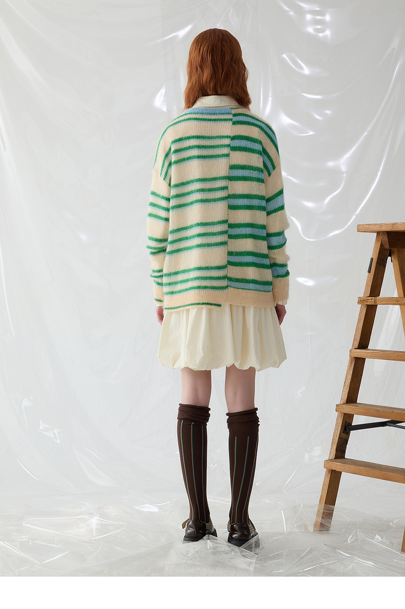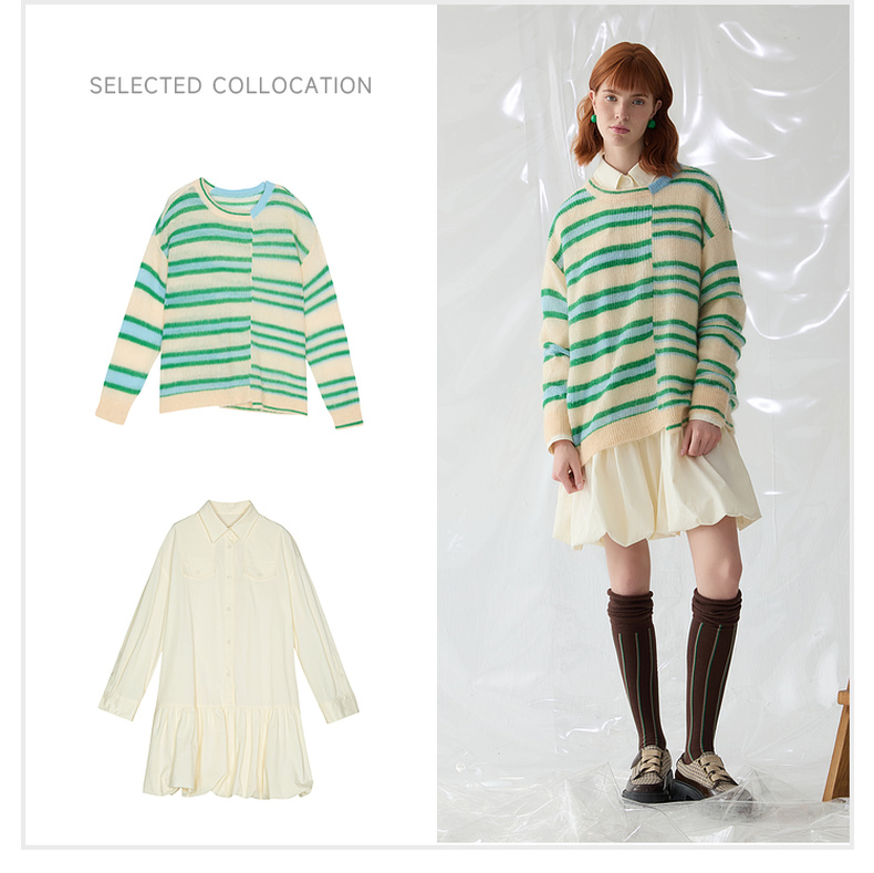 谜底圆领套头针织衫长袖2025春新品蓬松条纹宽松毛衫女251MZ0392