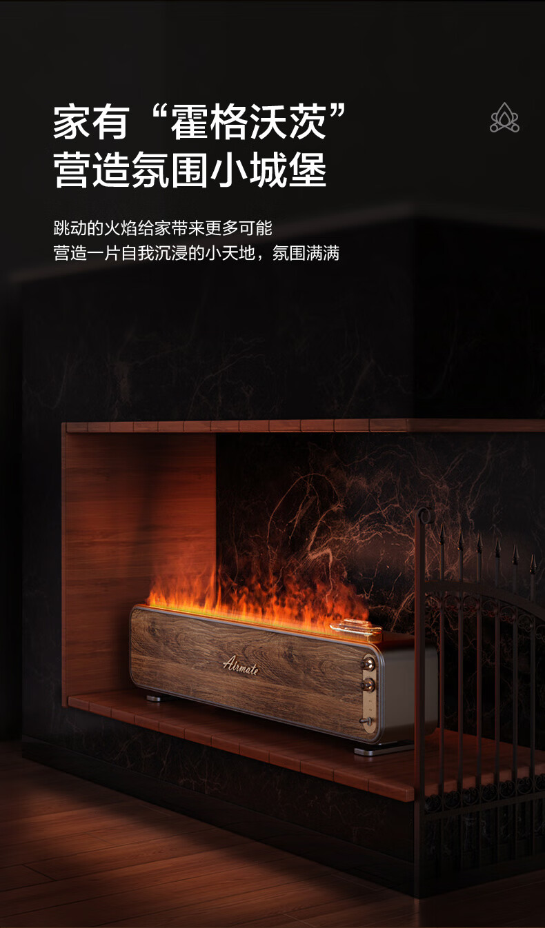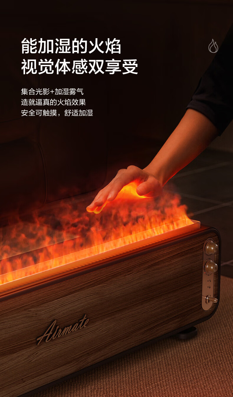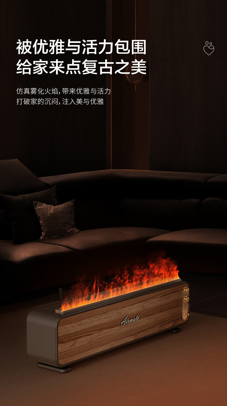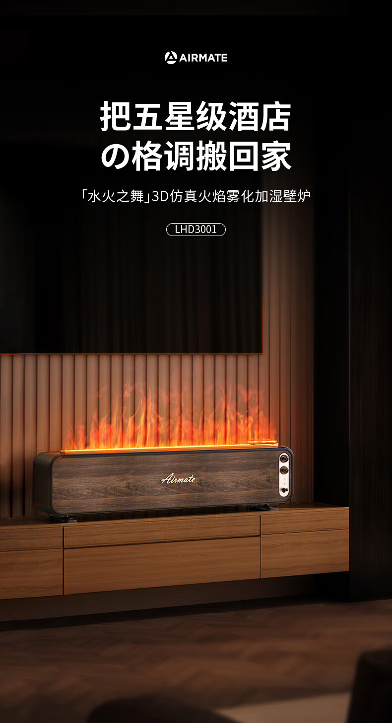 【小家电】艾美特火焰加湿器卧室家用低噪大容量仿真火负离子净化香薰壁炉空气净化加湿 LHD3001 HF