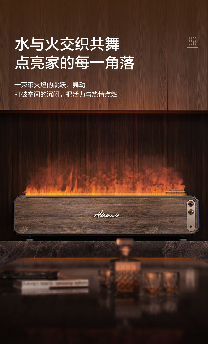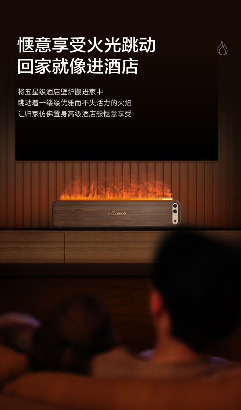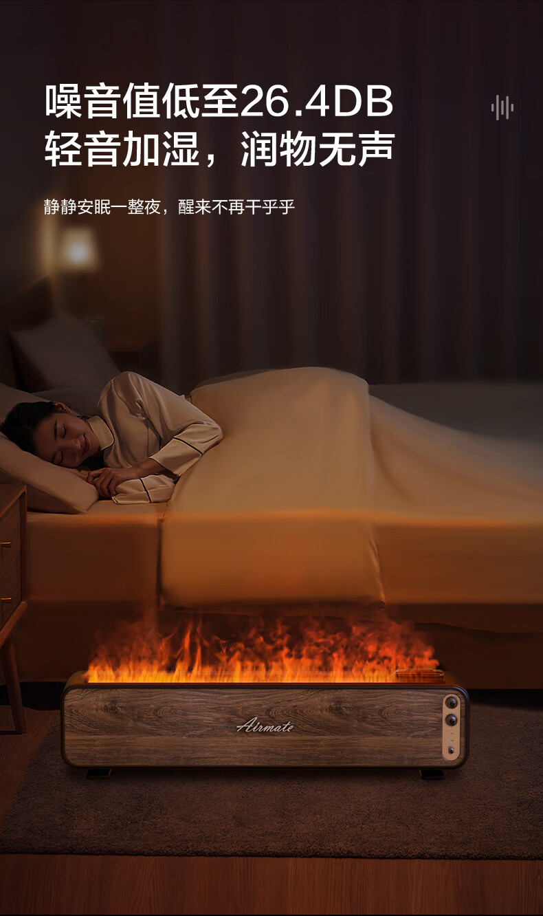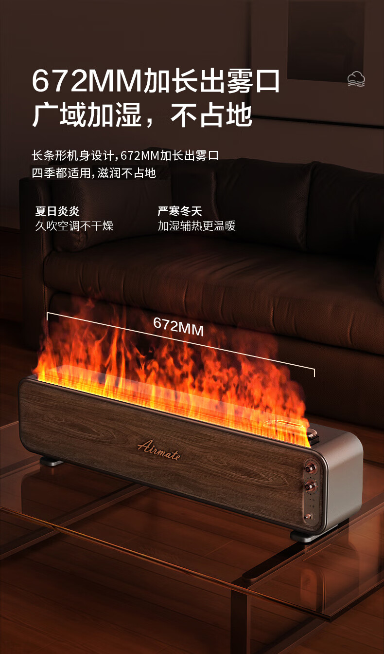 【小家电】艾美特火焰加湿器卧室家用低噪大容量仿真火负离子净化香薰壁炉空气净化加湿 LHD3001 HF