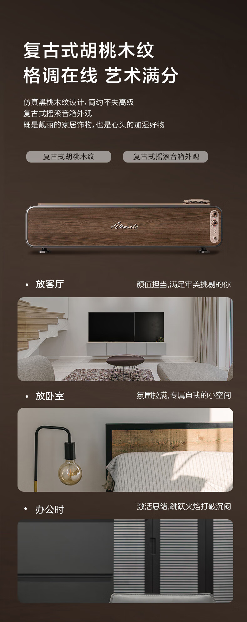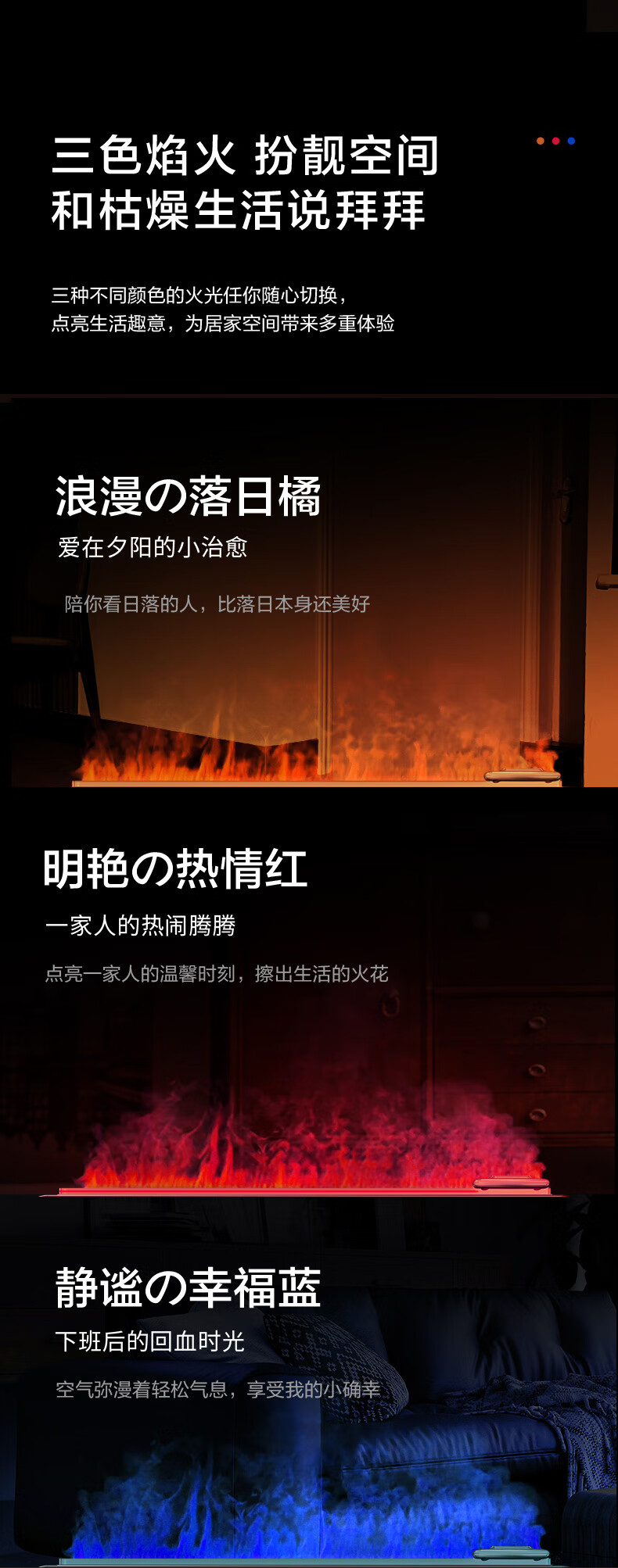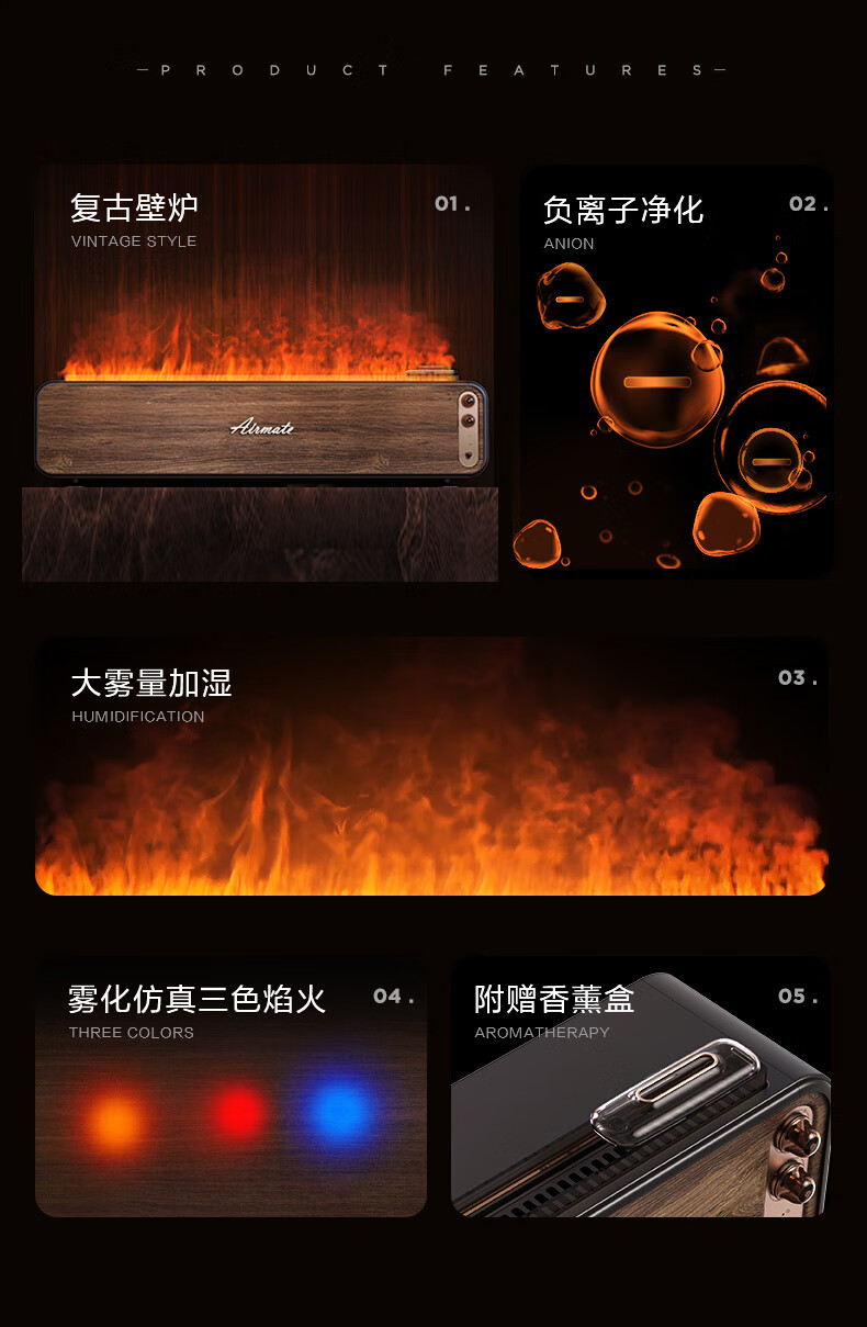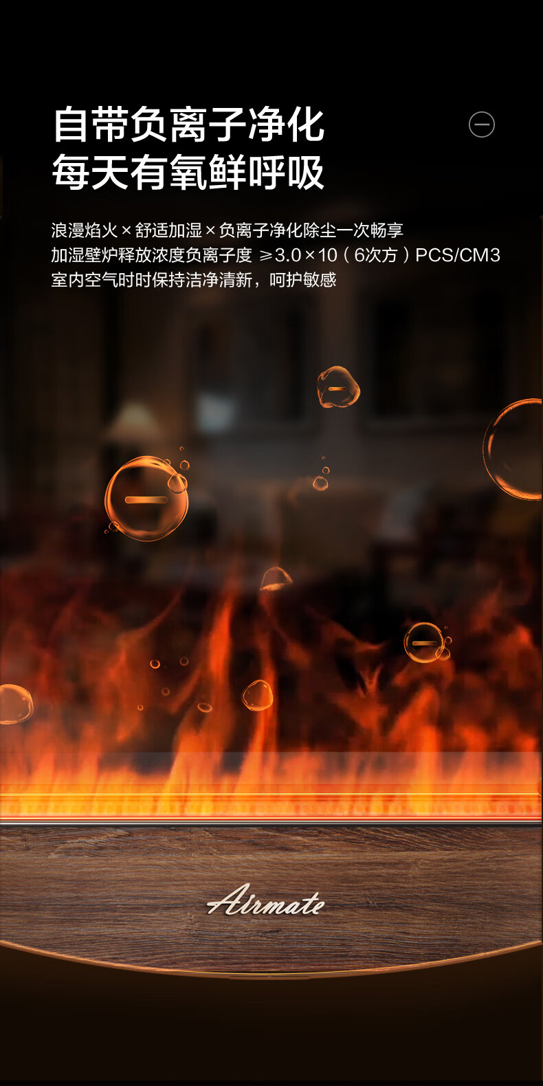 【小家电】艾美特火焰加湿器卧室家用低噪大容量仿真火负离子净化香薰壁炉空气净化加湿 LHD3001 HF