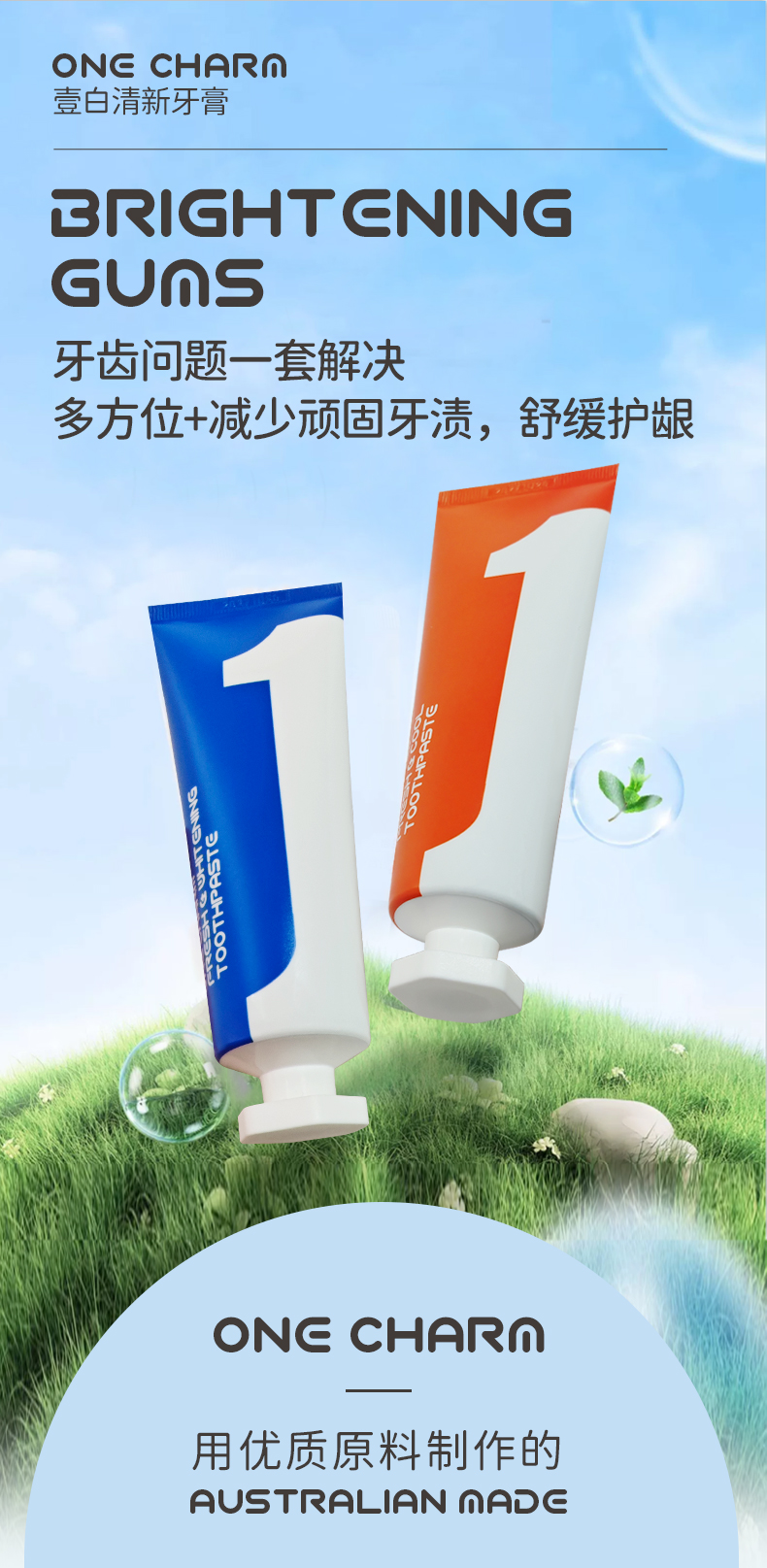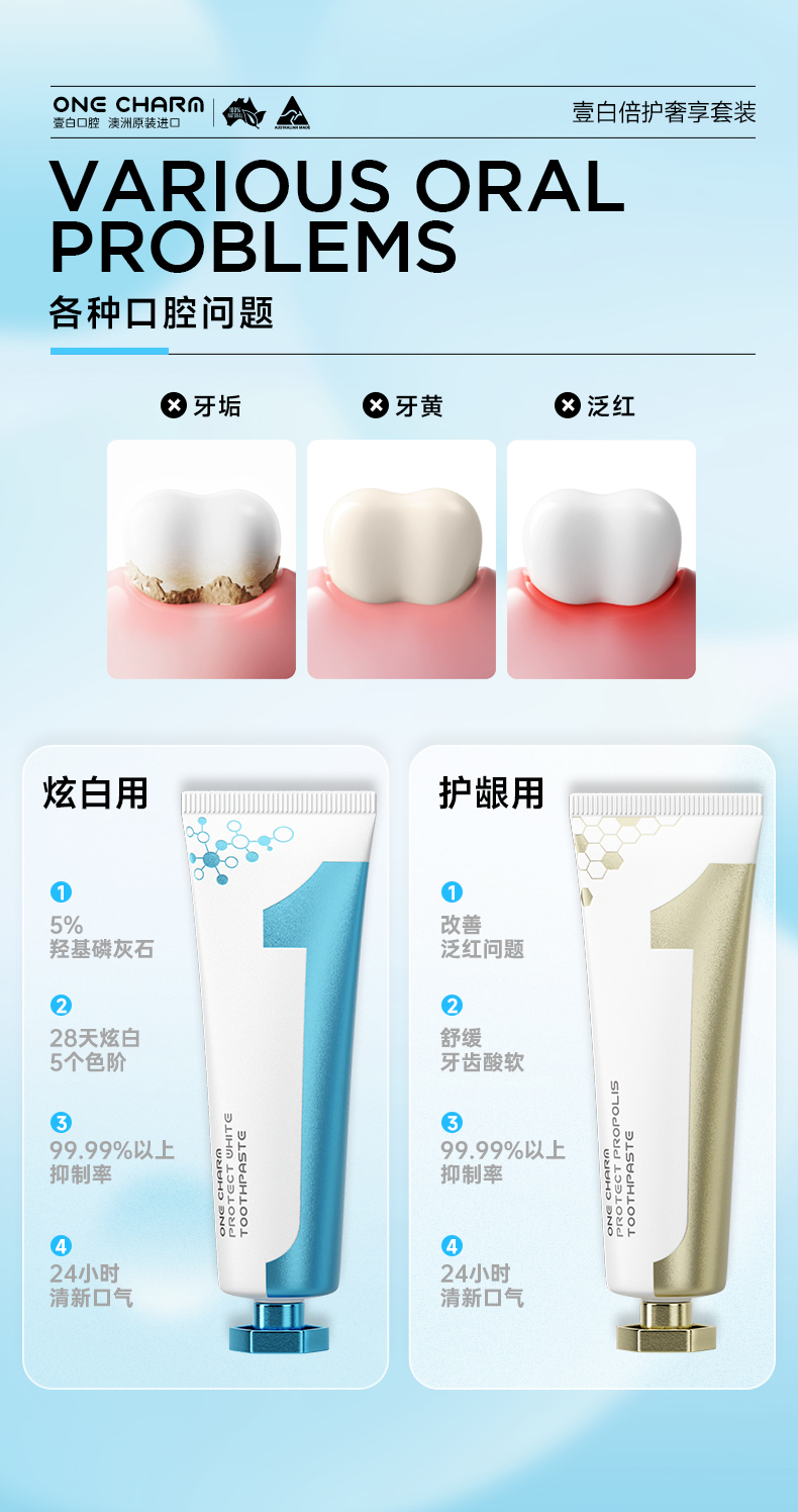 【生活必备丨壹白牙膏系列】澳大利亚原装进口,选用优质原料制作,4重焕白减渍,溶解牙垢,有效抑制牙菌牙斑,多效护理口腔健康