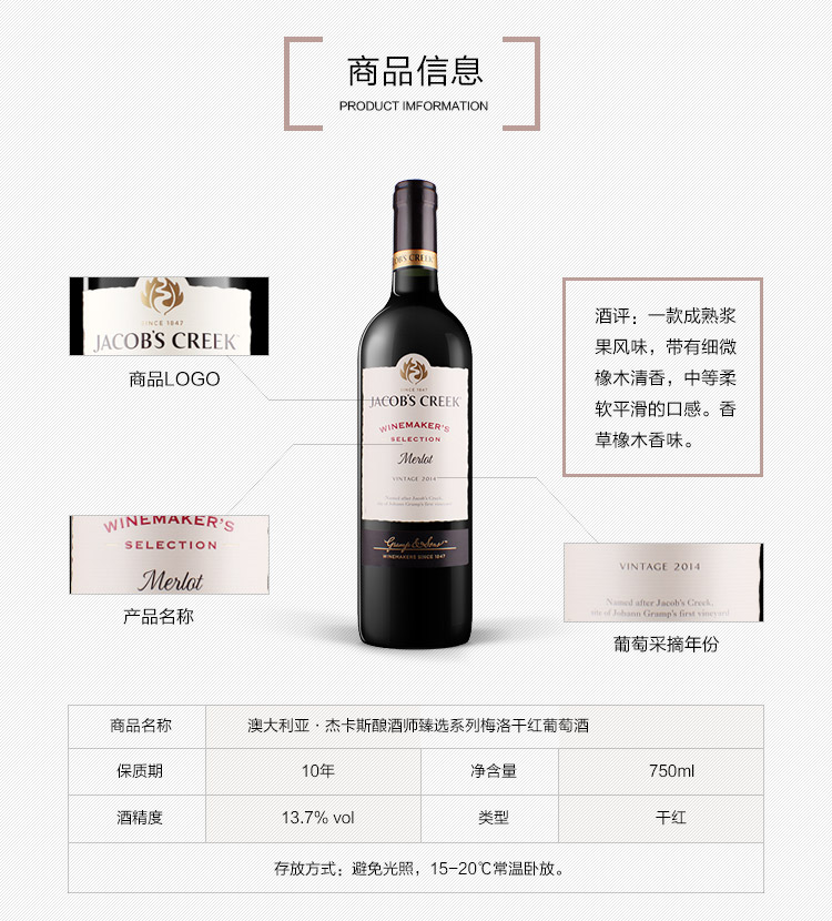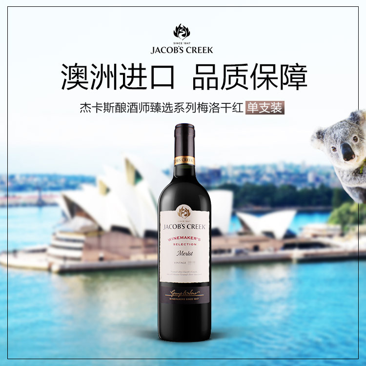 杰卡斯 酿酒师精选系列 梅洛干型红葡萄酒 澳洲原装进口红酒750ml