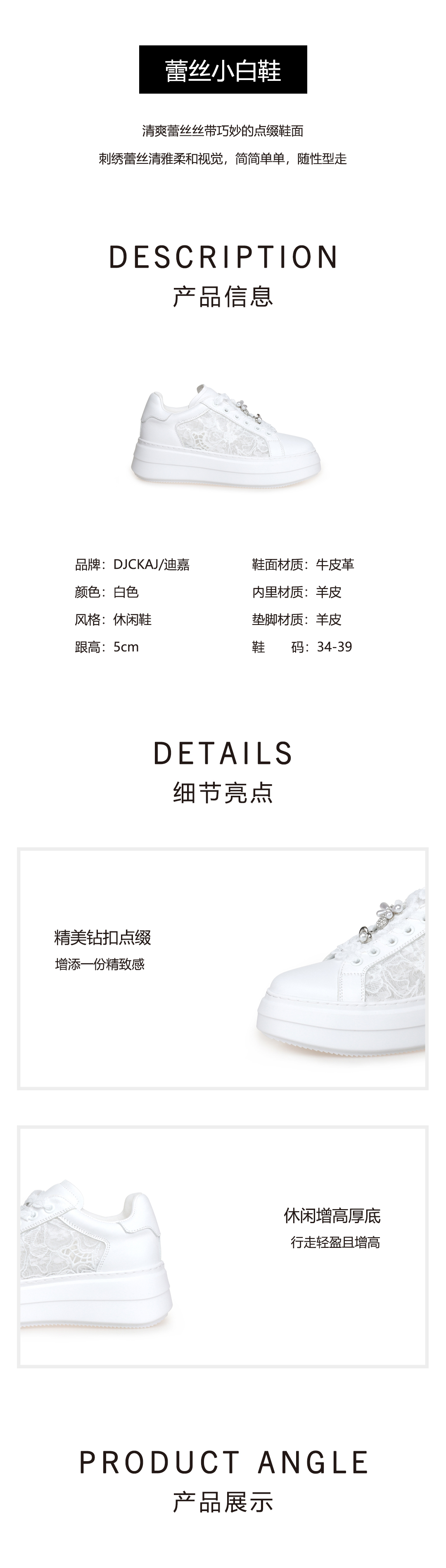 豪麟名鞋奥莱迪嘉女鞋时尚休闲鞋牛皮革DJJGA51WX024白色 原价1660元