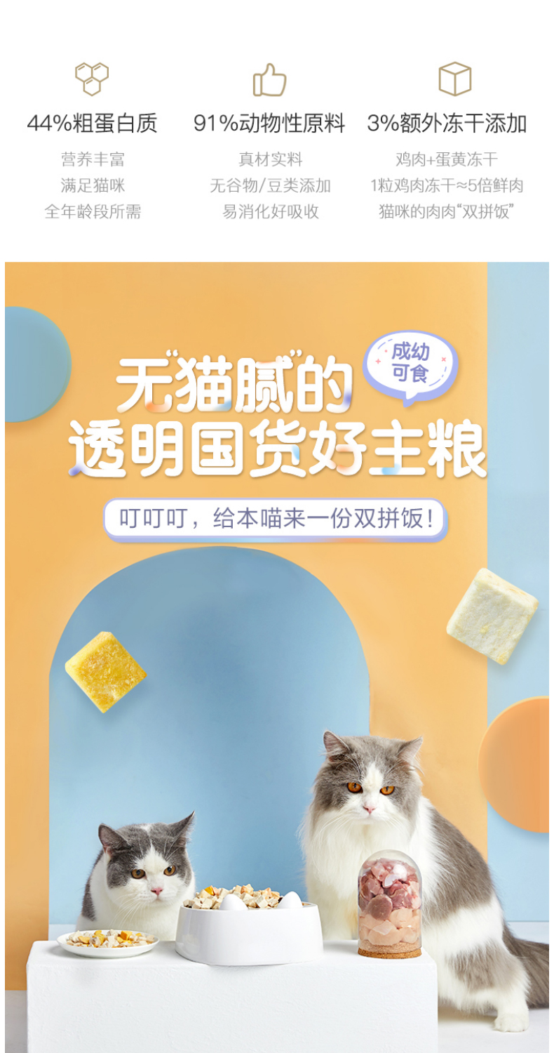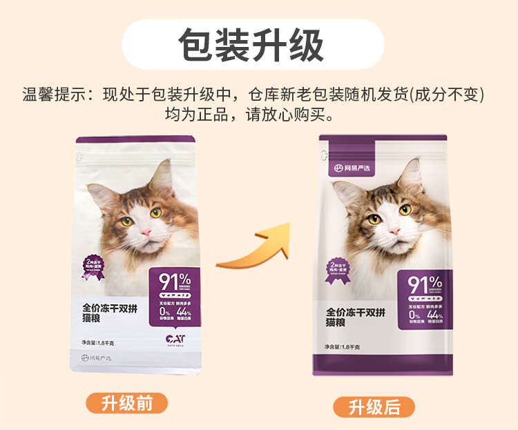 网易严选 全价冻干双拼猫粮成幼猫高含肉量无谷猫主粮1.8KG/袋
