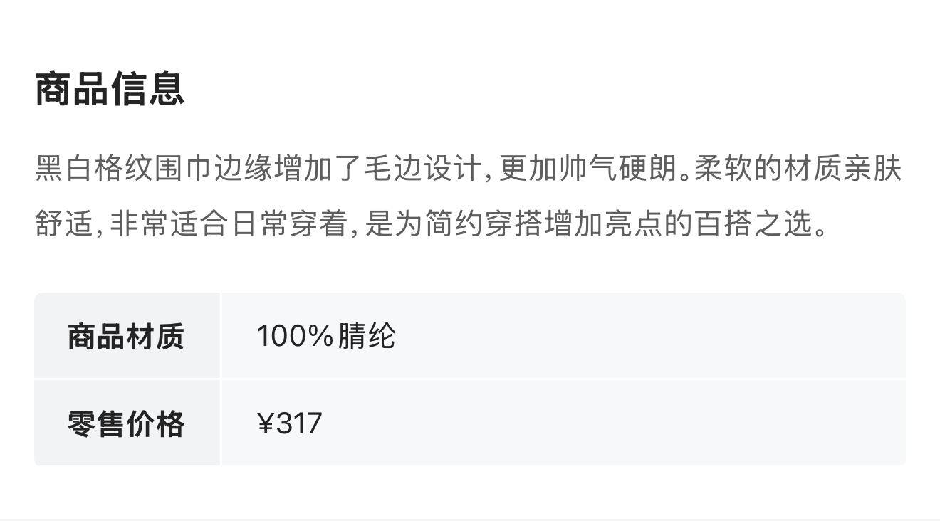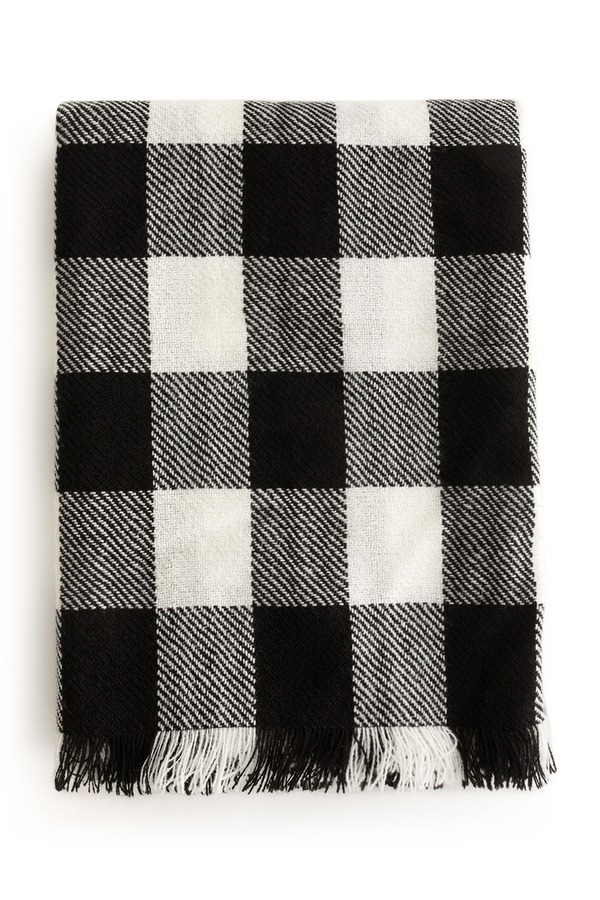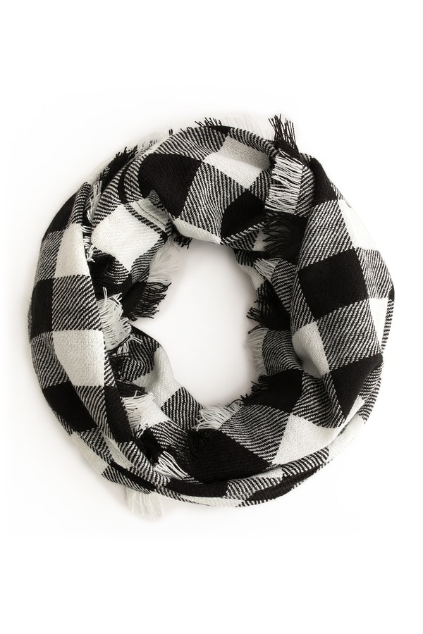 NOIR 黑白格纹毛边围巾 725