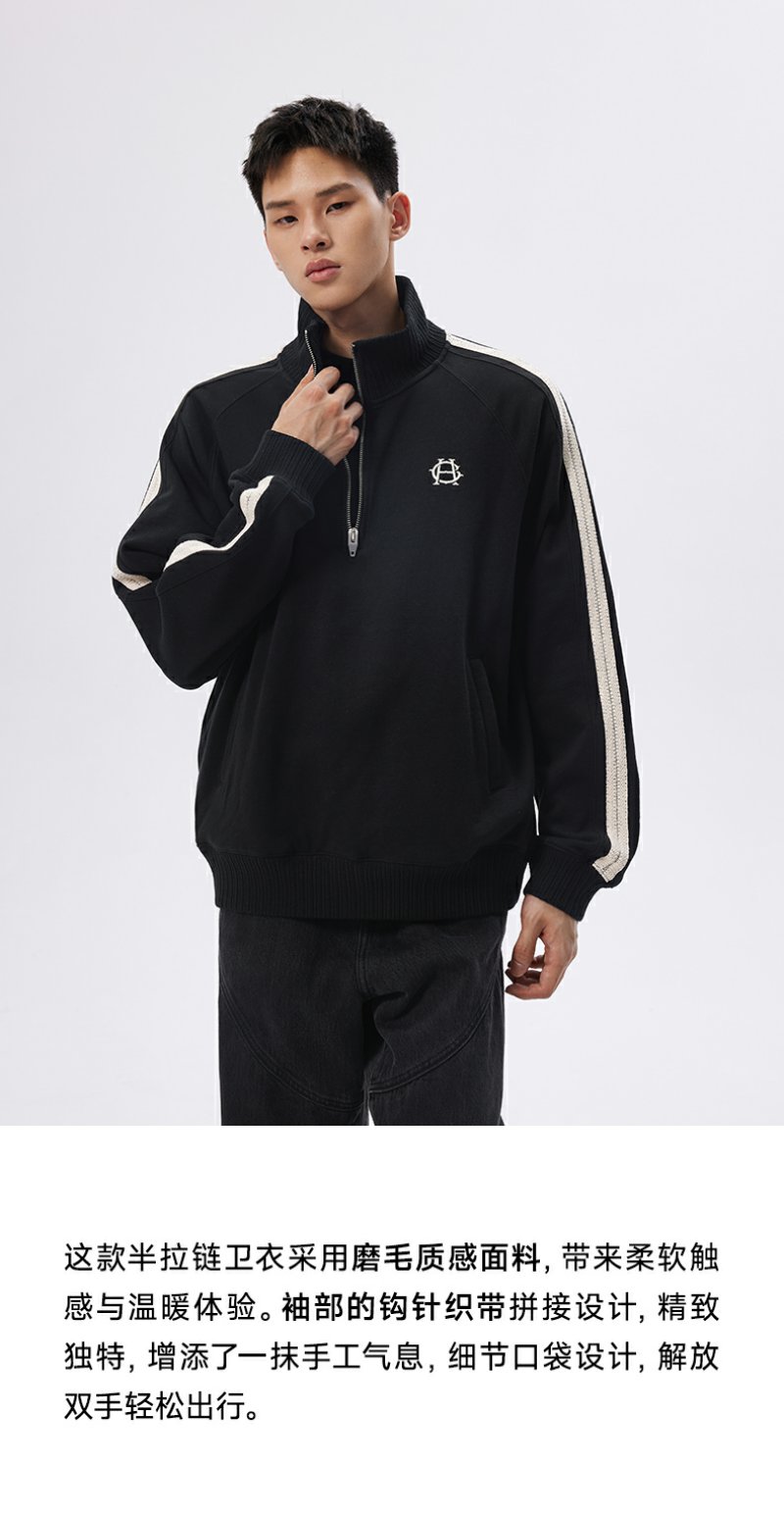 CHINISM赤尘 半拉链立领卫衣男冬季新款磨毛质感简约男士上衣 商品图1