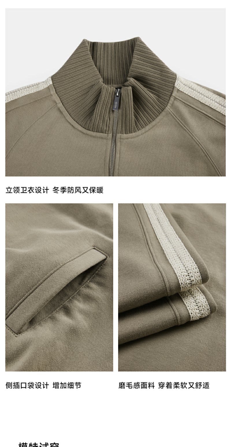 CHINISM赤尘 半拉链立领卫衣男冬季新款磨毛质感简约男士上衣 商品图4