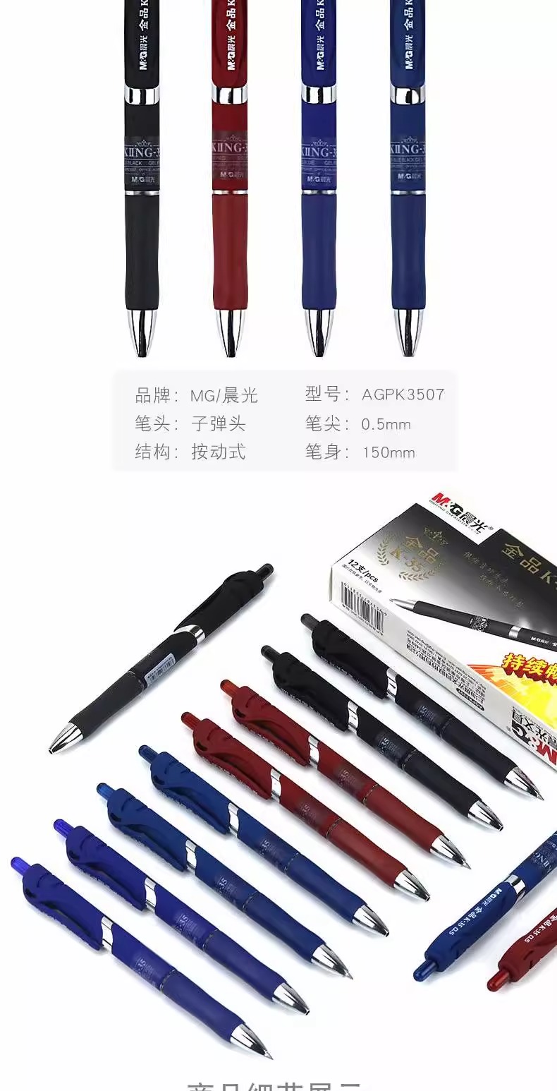 晨光中性笔AGPK3507 0.5mm黑/蓝/红色 按动子弹头普通油墨 1支
