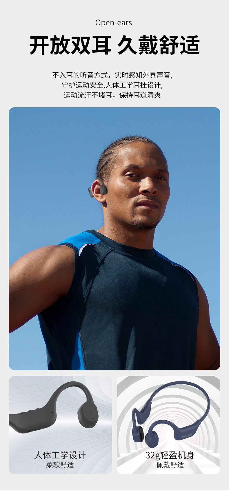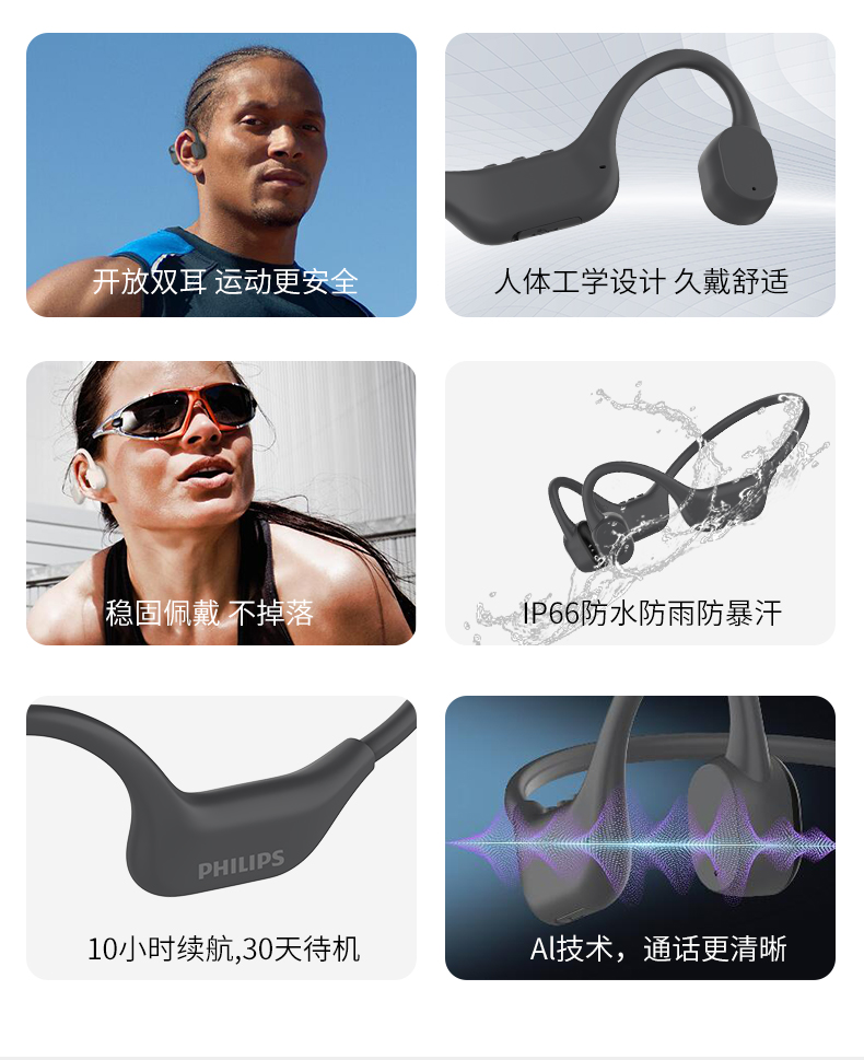 飞利浦骨传导耳机 TAA6609C 无内存卡 不带夜跑灯