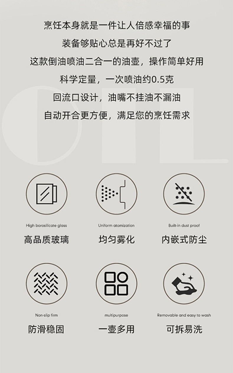 多功能玻璃喷倒两用油壶家用厨房大容量按压式喷雾油瓶开合喷油壶