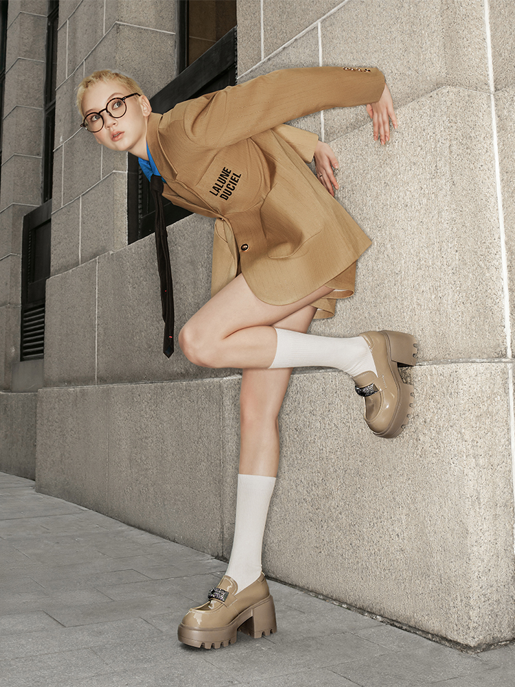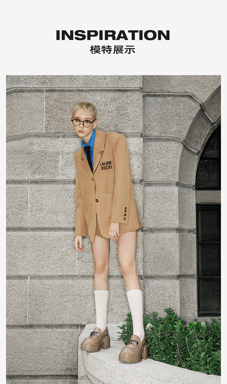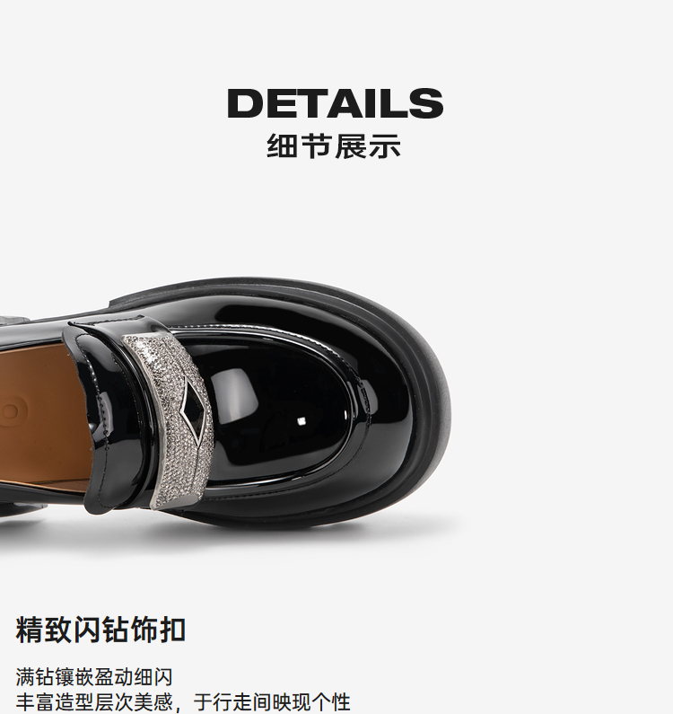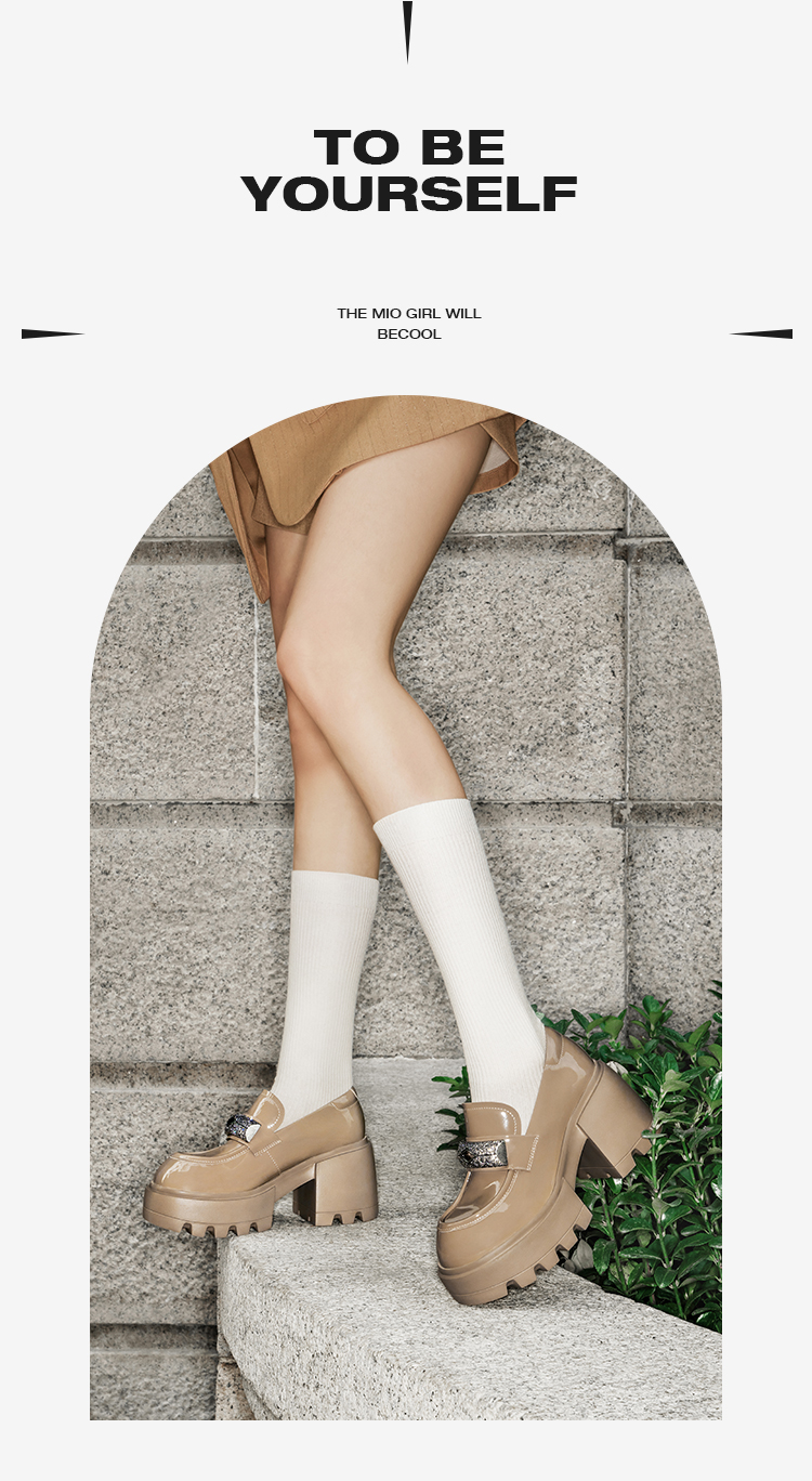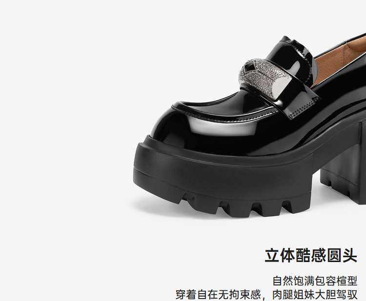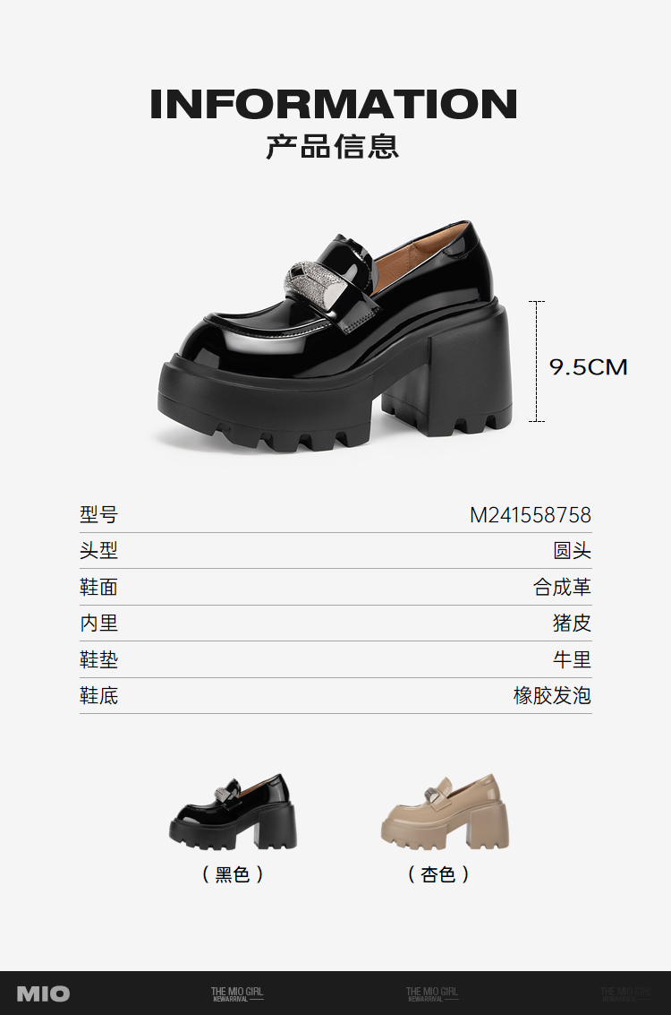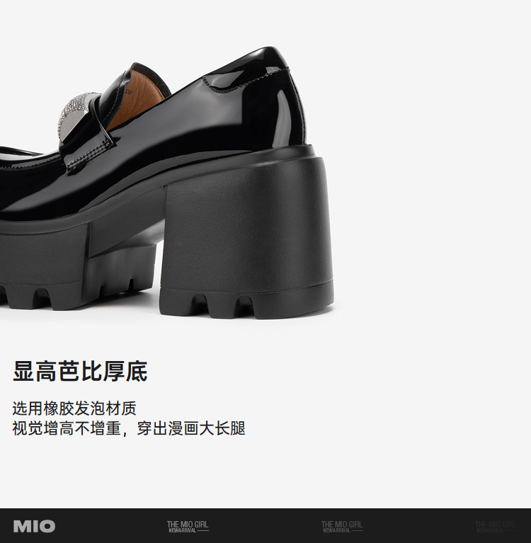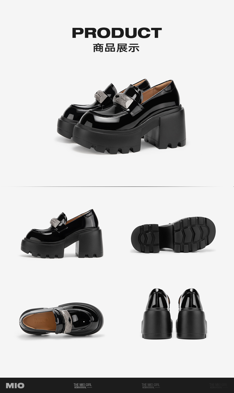 MIO米奥春季圆头超高跟学院乐福鞋时尚闪钻饰扣单鞋女M241558758
