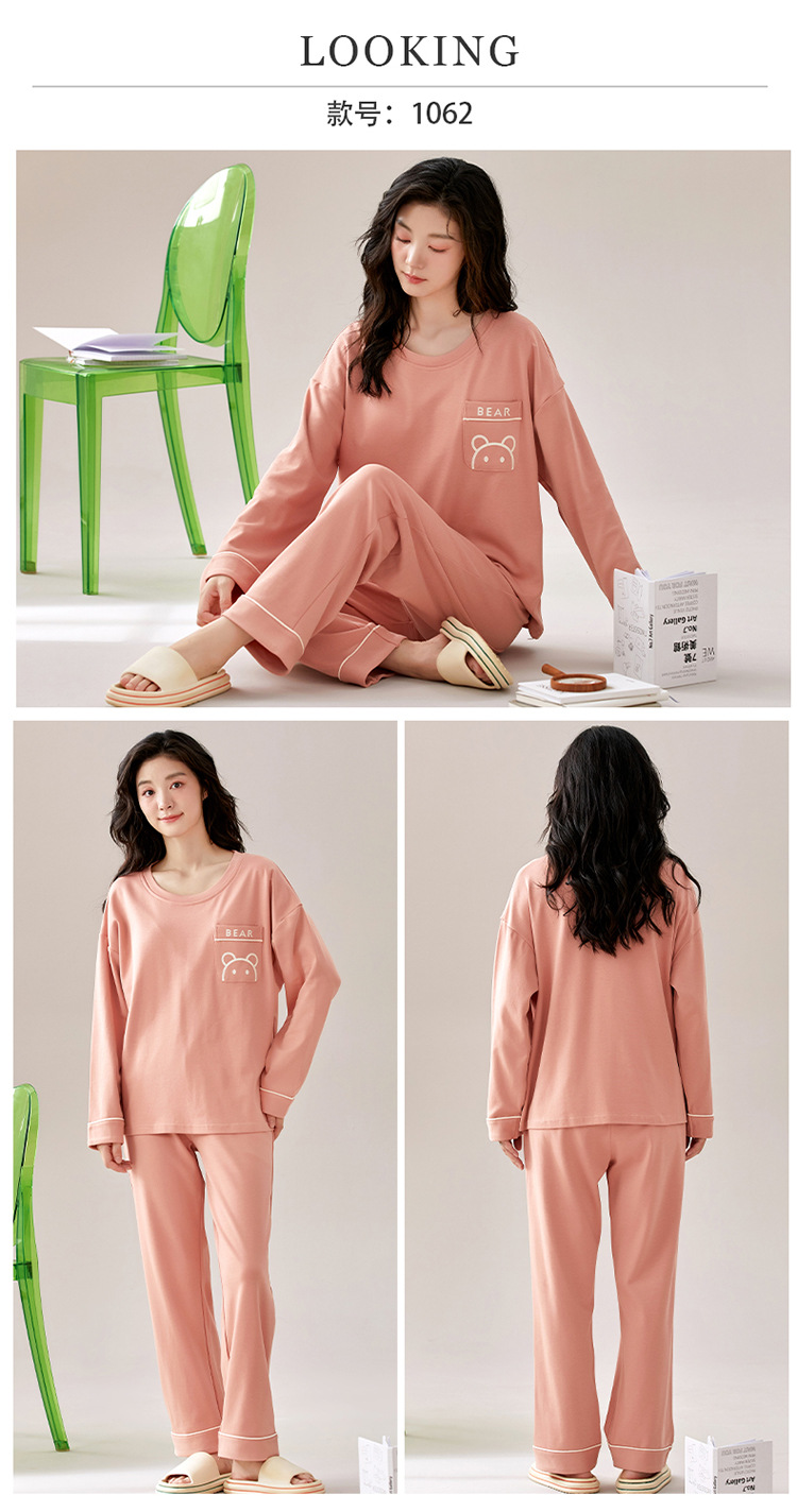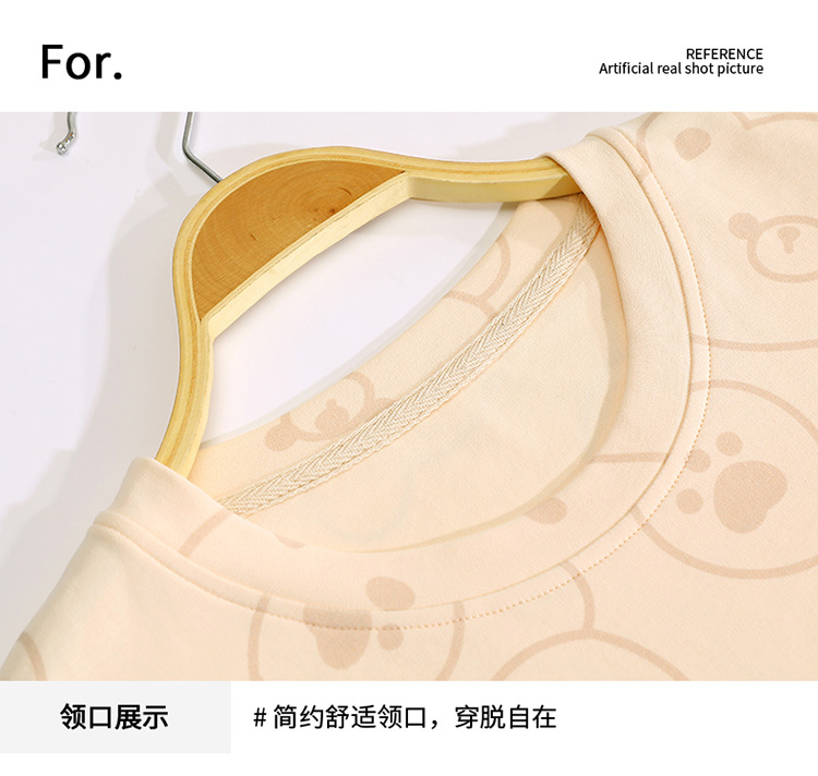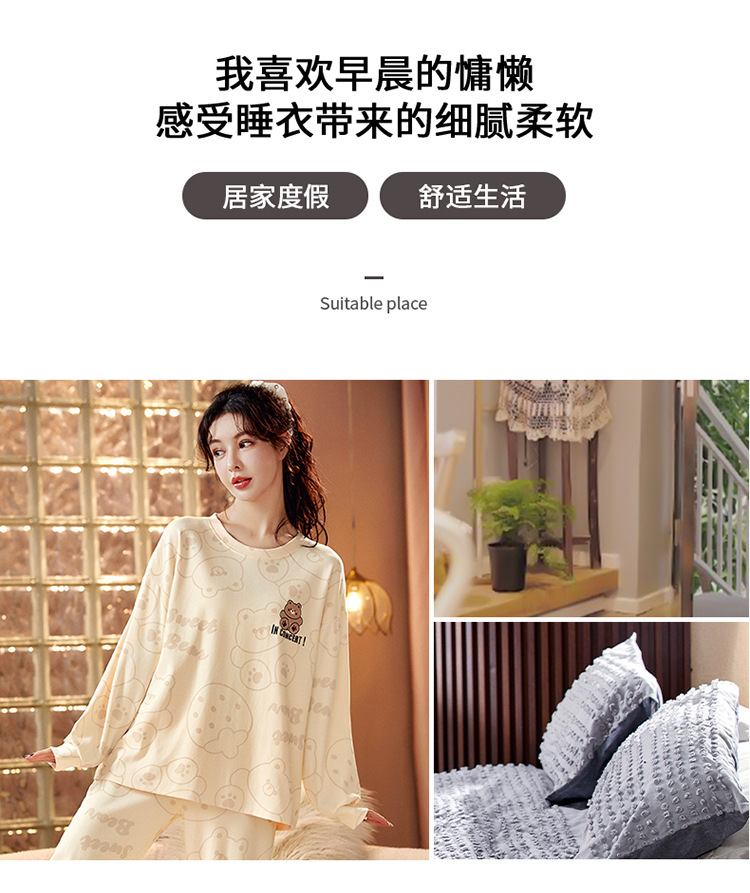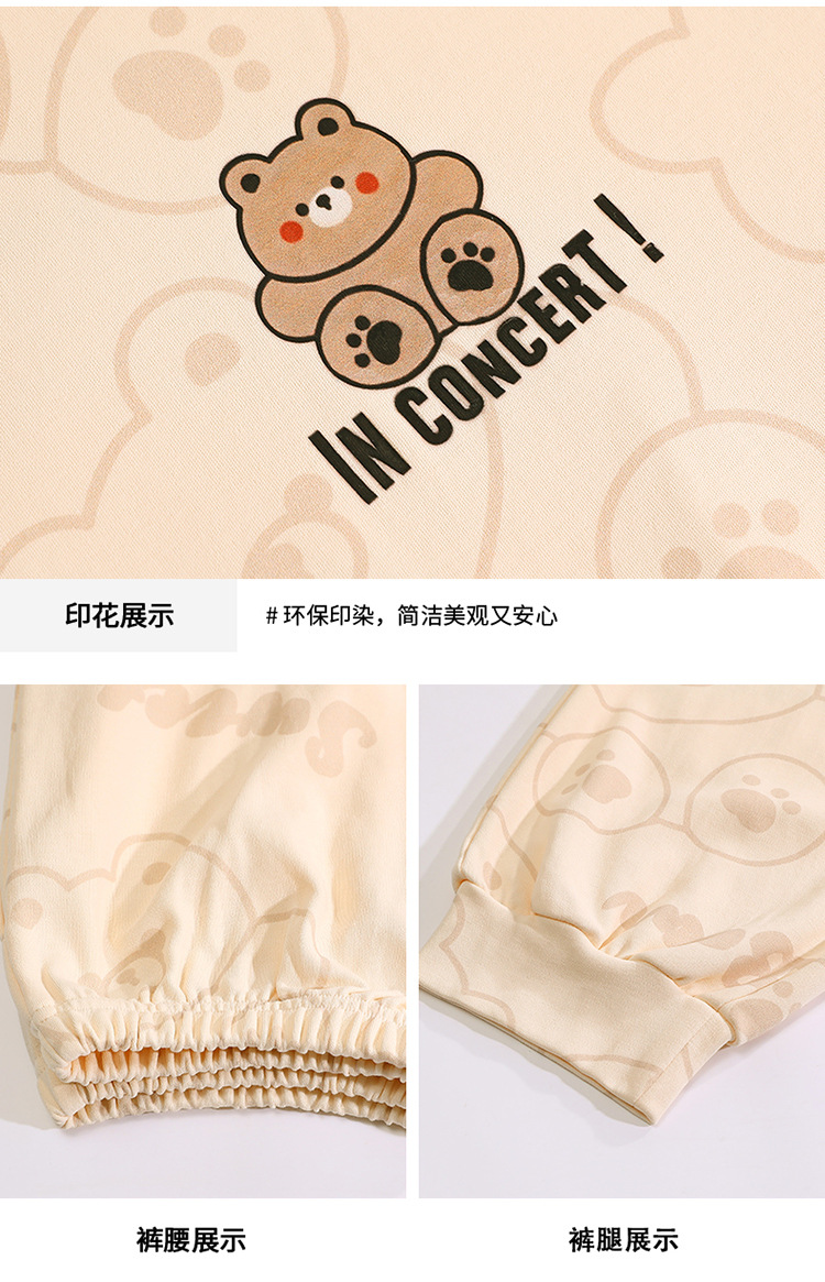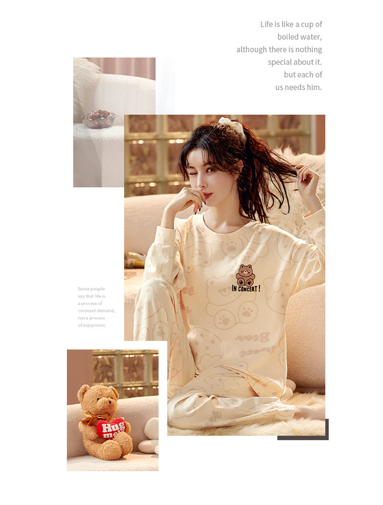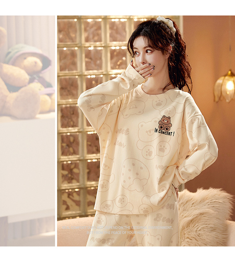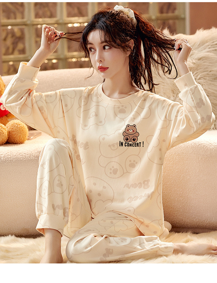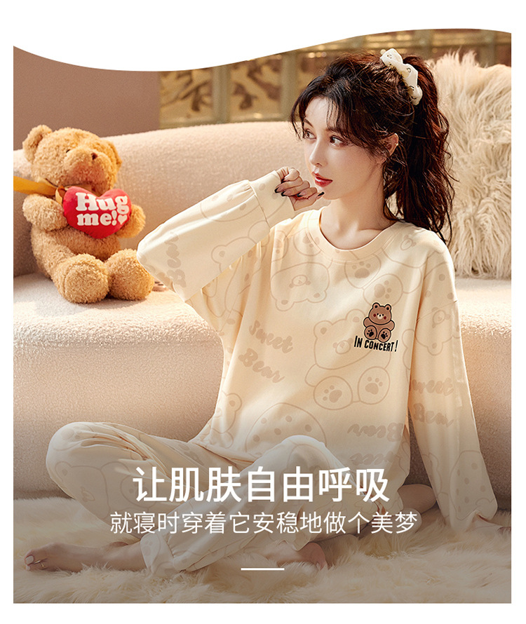 春秋季睡衣女纯棉长袖带胸垫自带文胸垫家居服可外穿套装网红小熊学生睡衣可外穿家居服