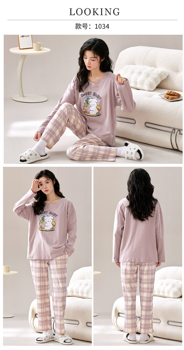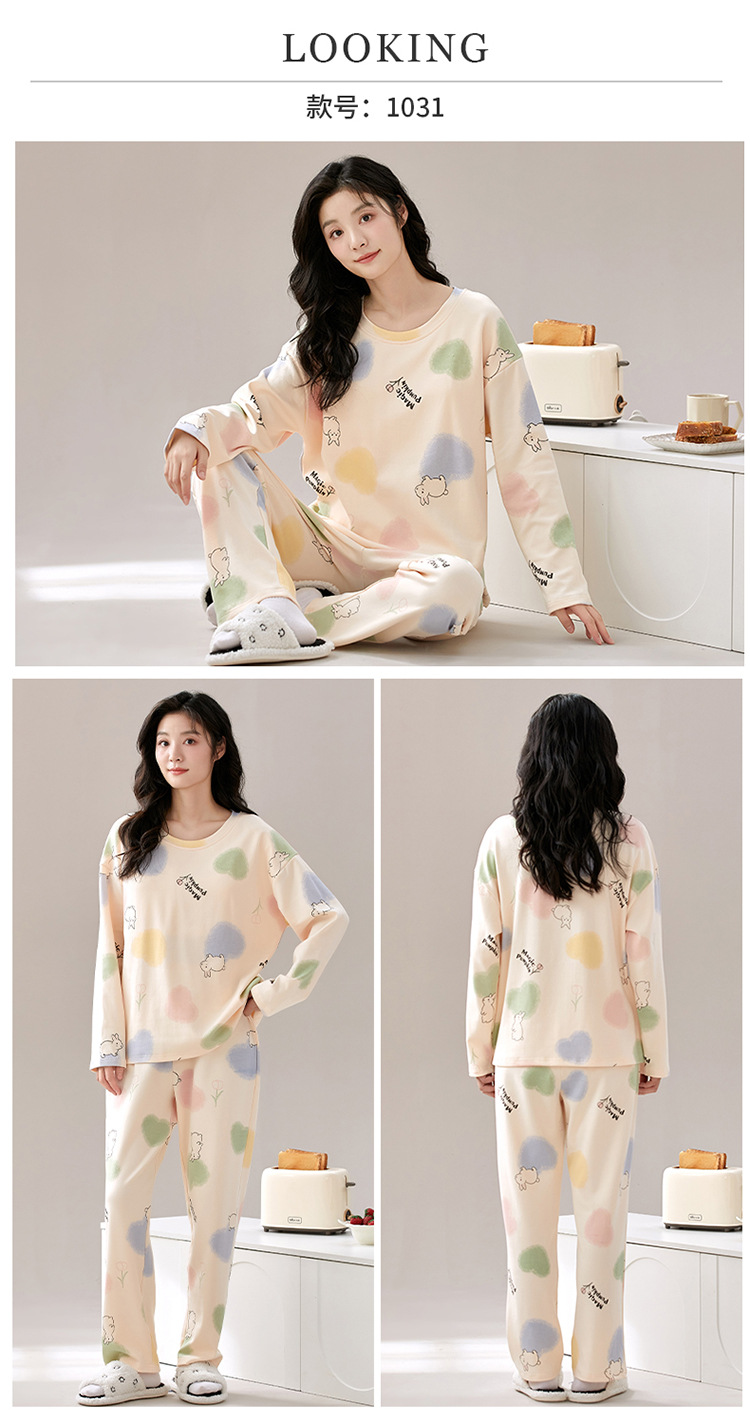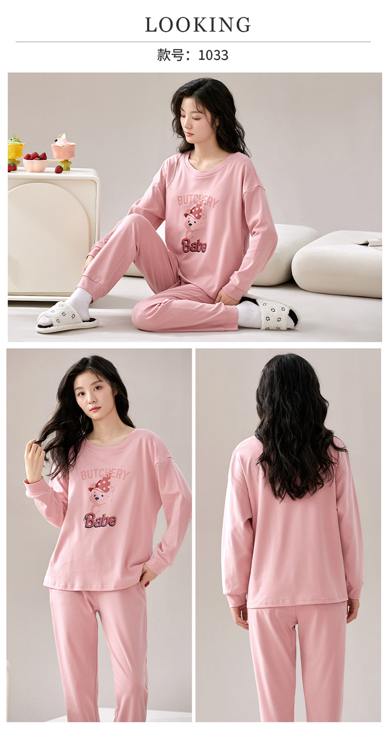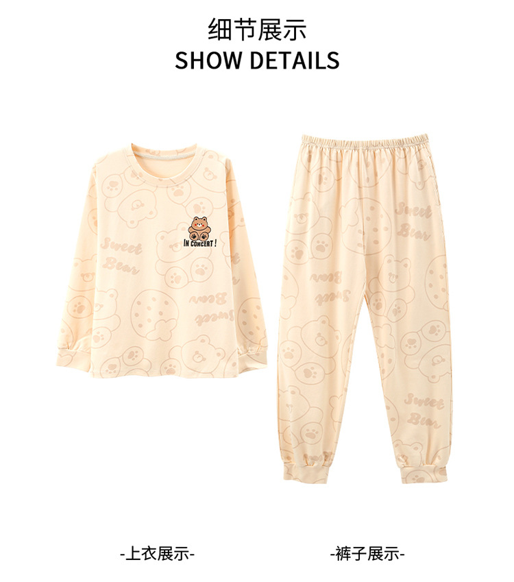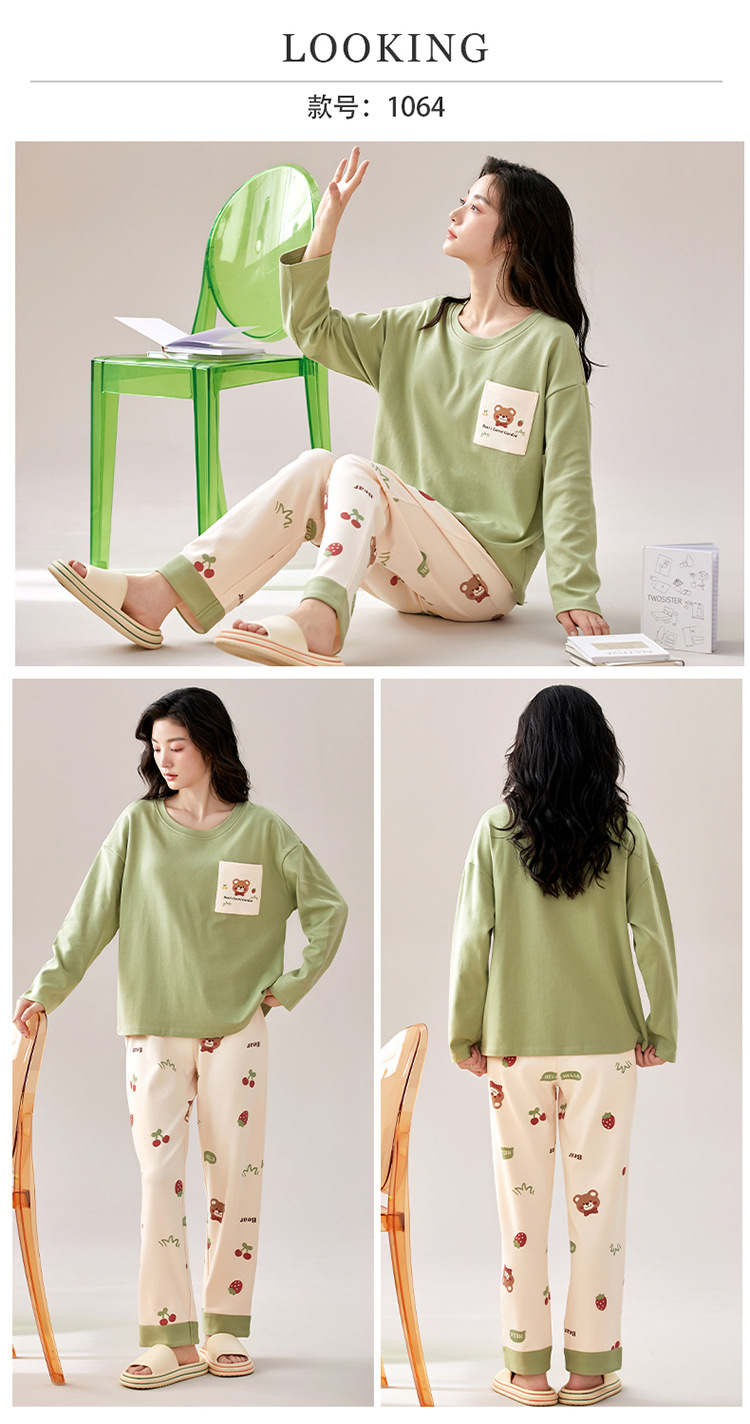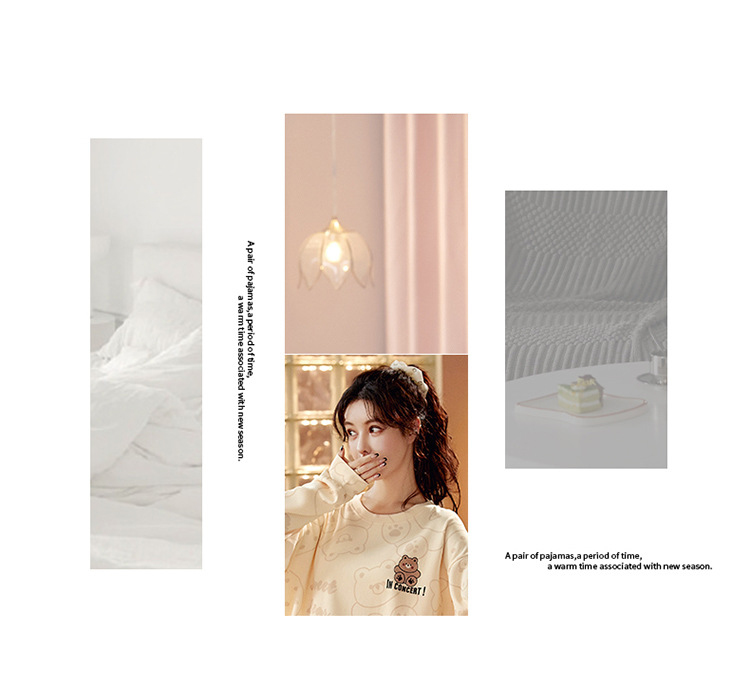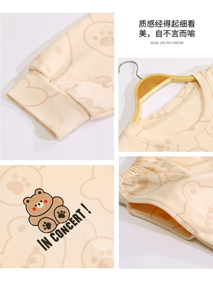 春秋季睡衣女纯棉长袖带胸垫自带文胸垫家居服可外穿套装网红小熊学生睡衣可外穿家居服
