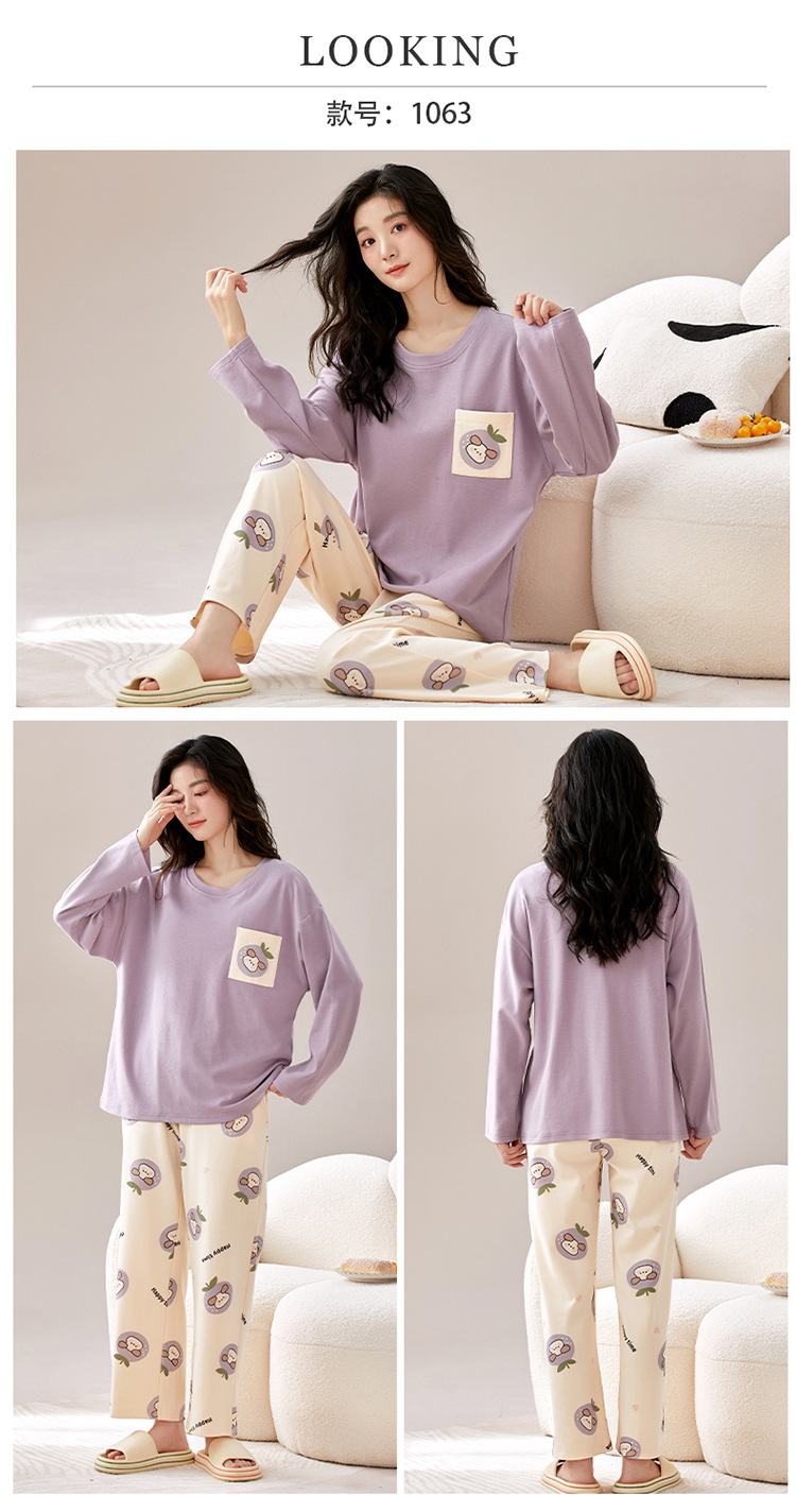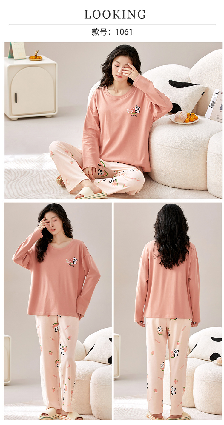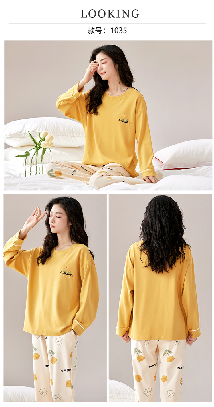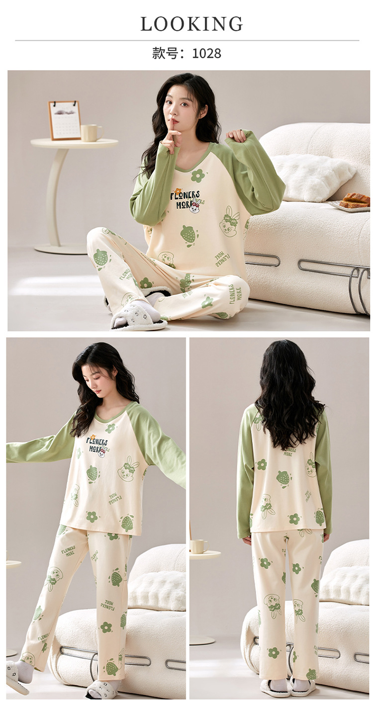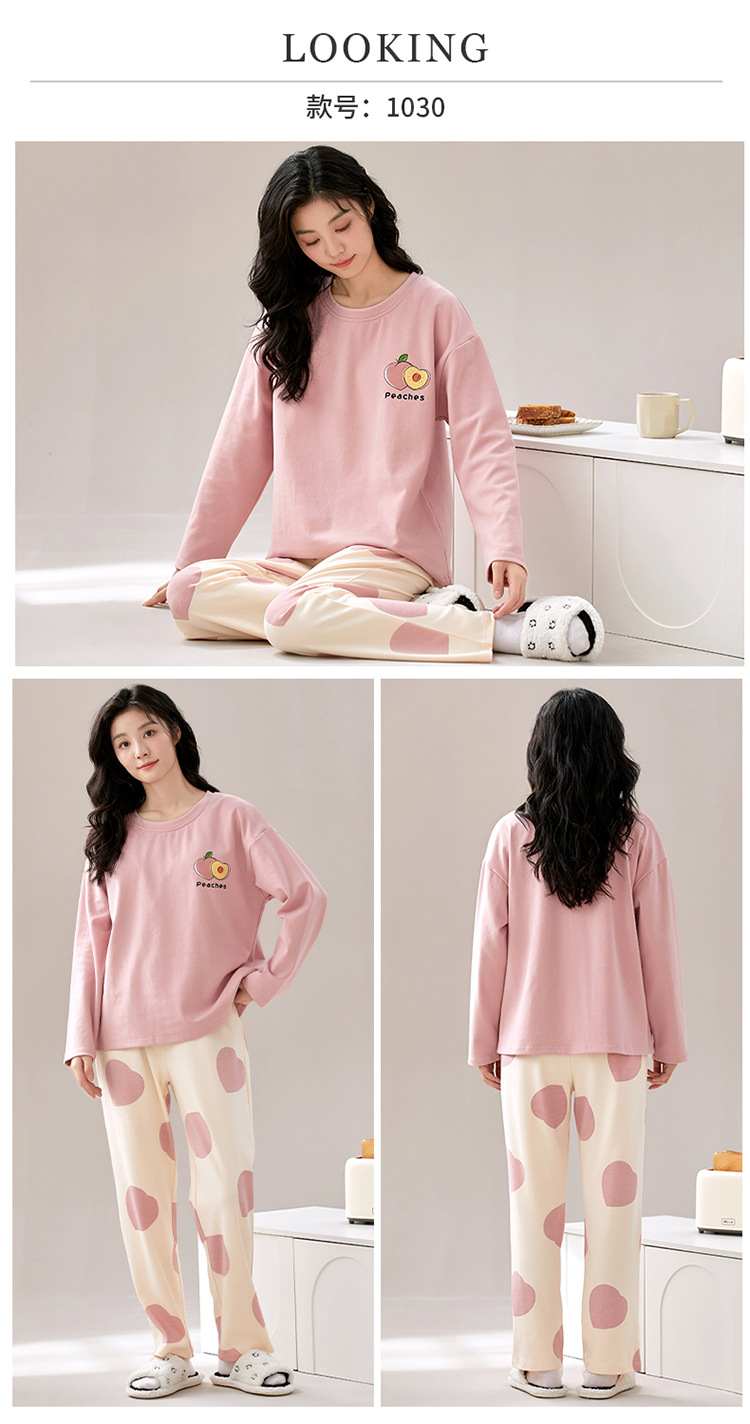 春秋季睡衣女纯棉长袖带胸垫自带文胸垫家居服可外穿套装网红小熊学生睡衣可外穿家居服