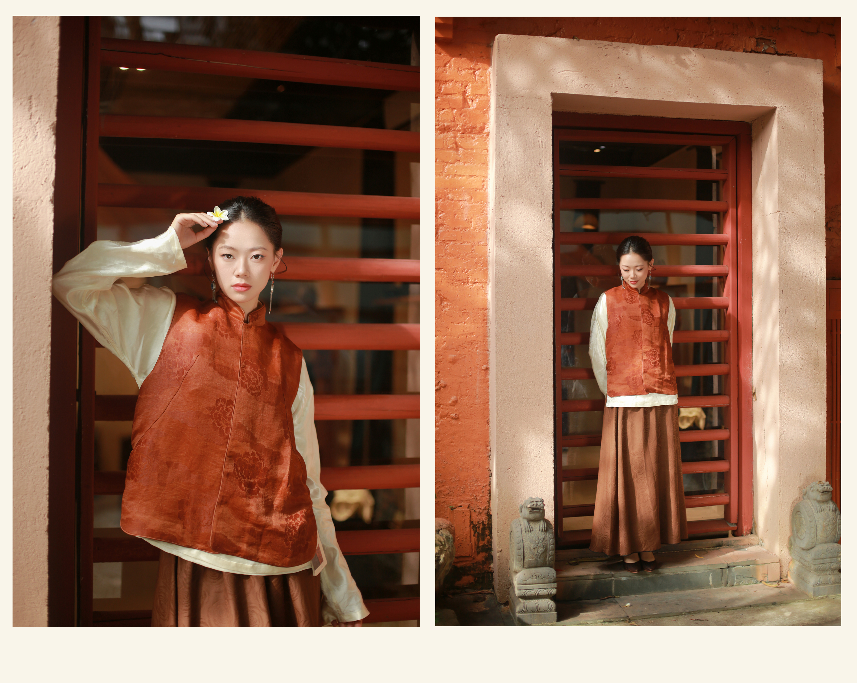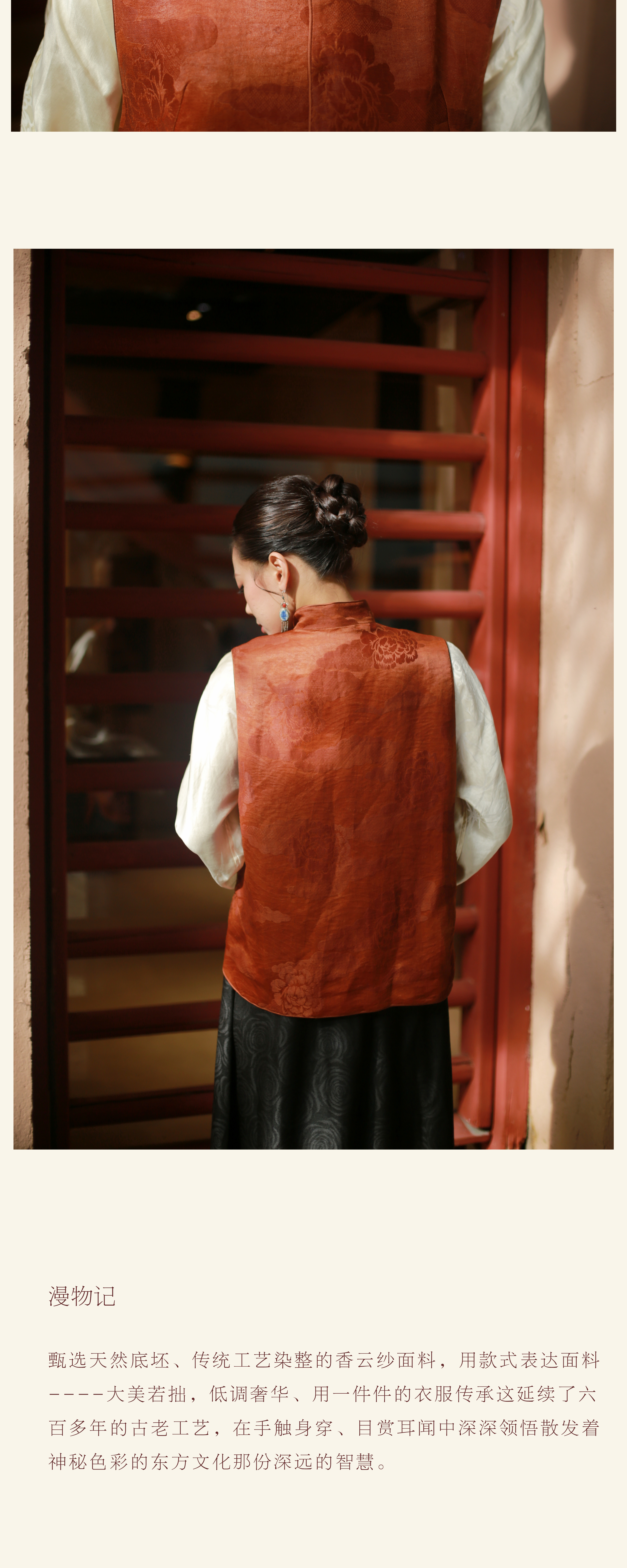 漫物记丝麻红云纱祥云牡丹花立领马甲mwj-M289