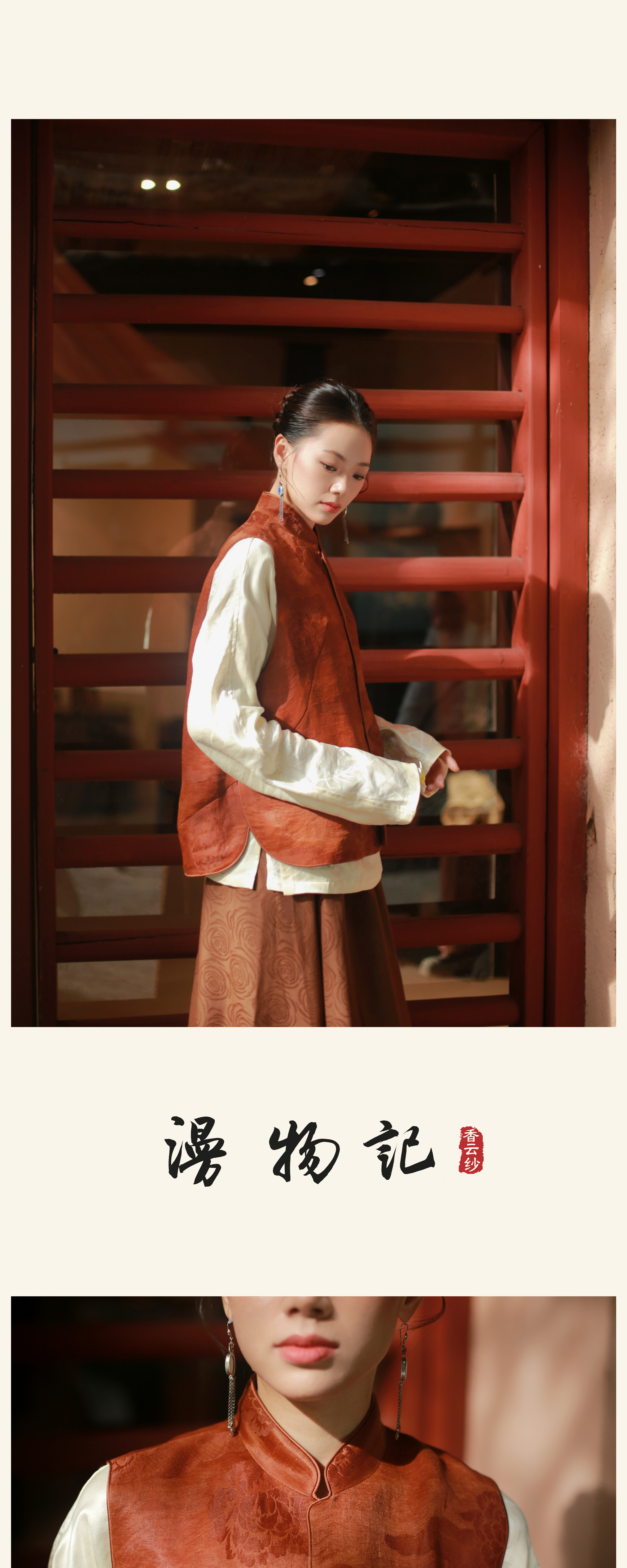 漫物记四经绞罗红云纱圆领斜襟祥云扣袍子xys-096