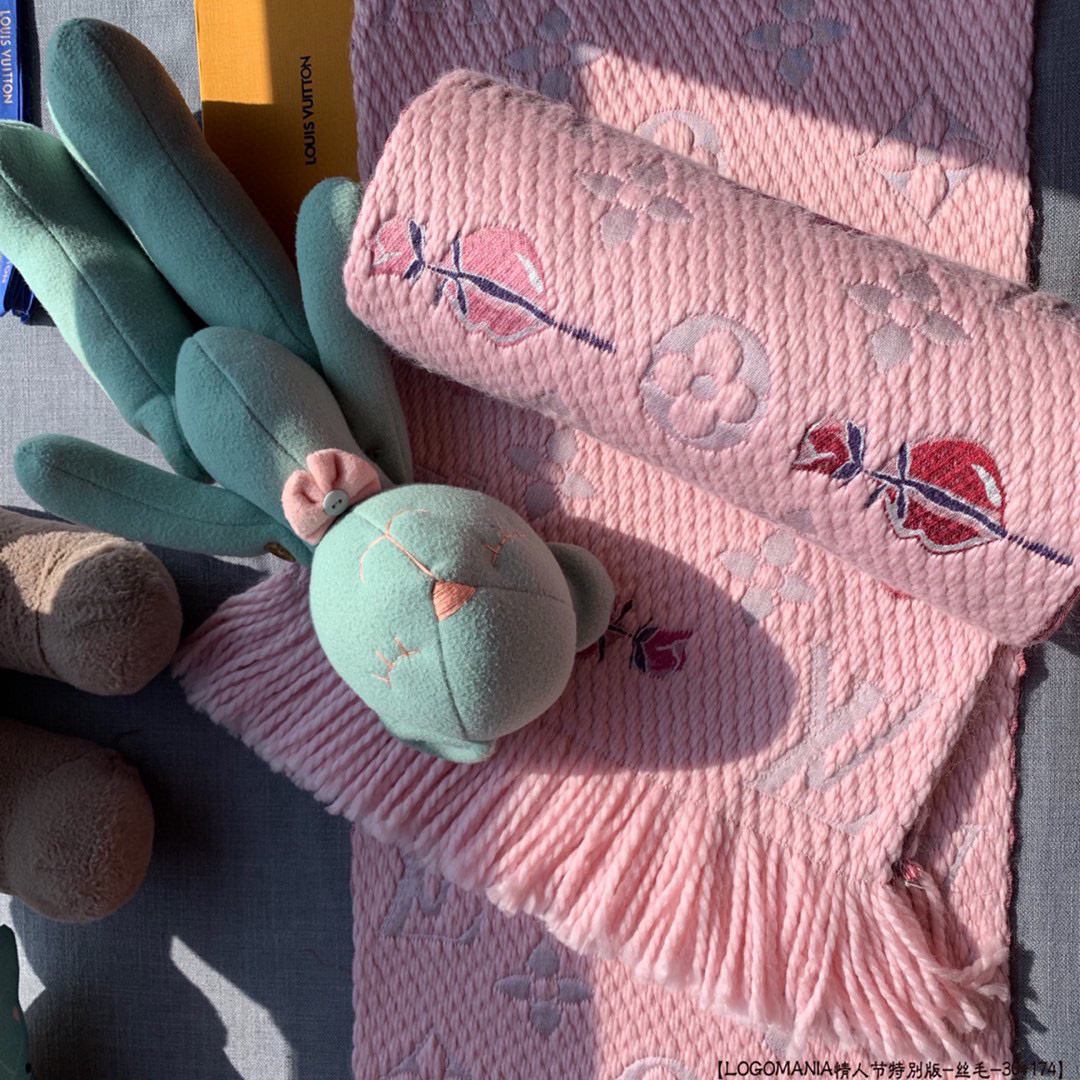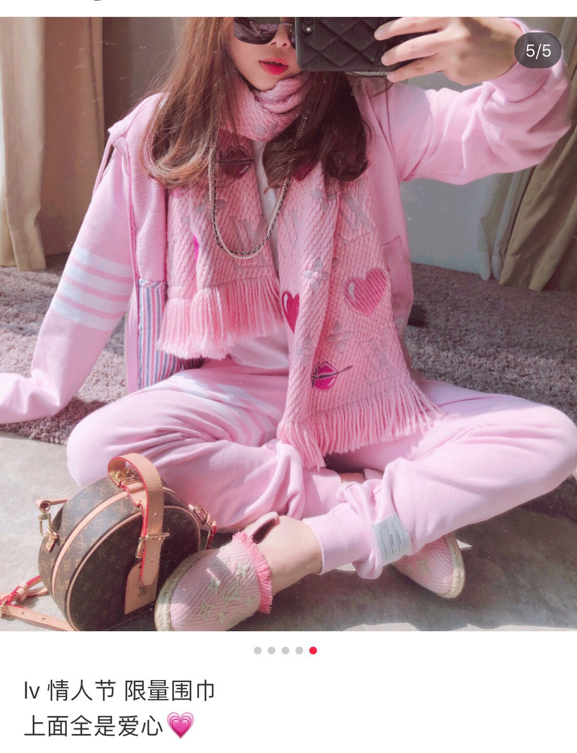 此款 Logomania A La Folie 围巾以提花工艺织出对比色 Monogram 图案,别致俏皮。色彩明亮的心形图案与口衔玫瑰的唇形图案散发浪漫气息。两侧面料设计更于细节处体现品质:一面为真丝,柔软光滑,另一面为羊毛,亲肤温暖,L家的提前献礼也是给大家提前做好准备 节日限定的图案设计 粉💗粉的公主色彩 送给你独一无二宠爱的公主最美不过了……