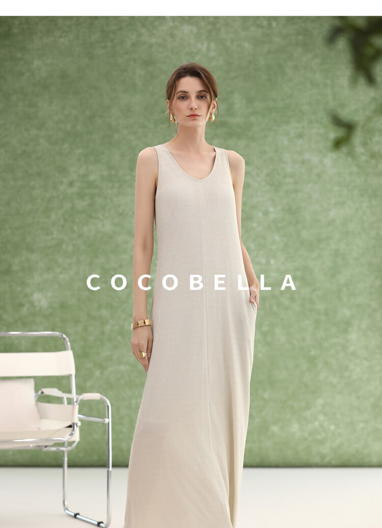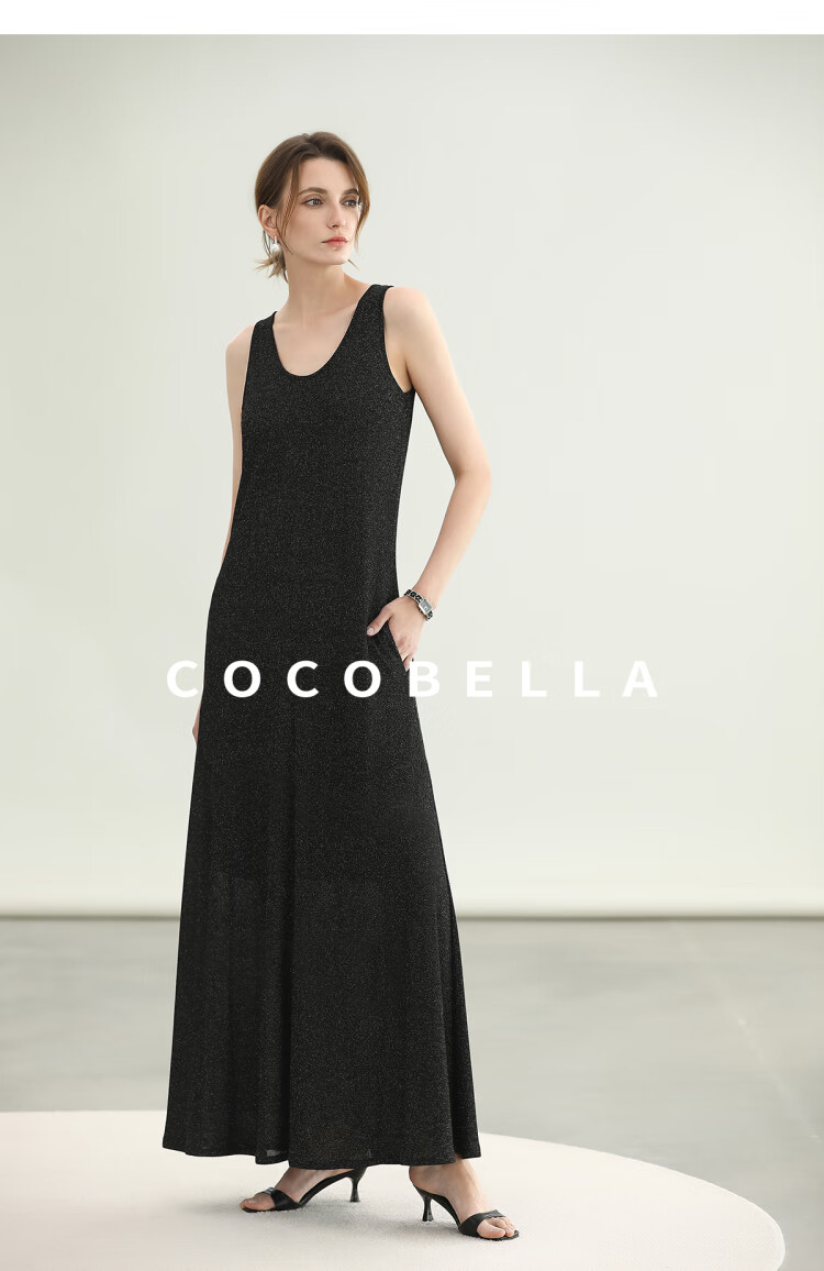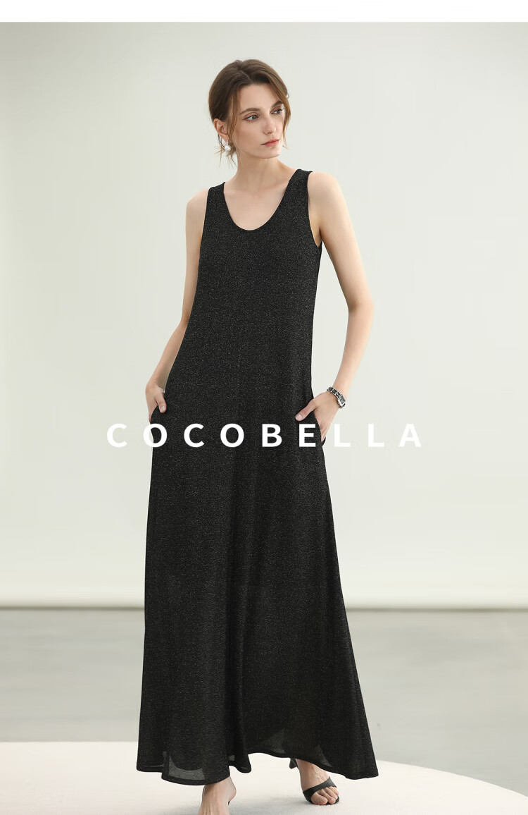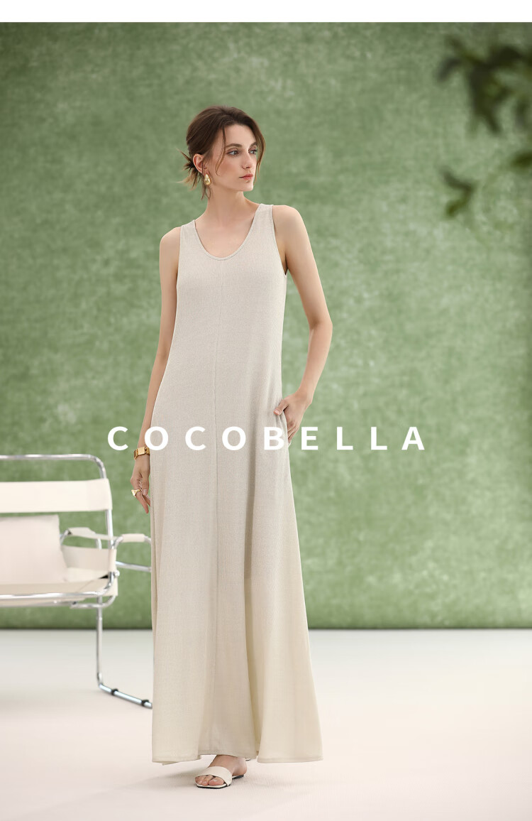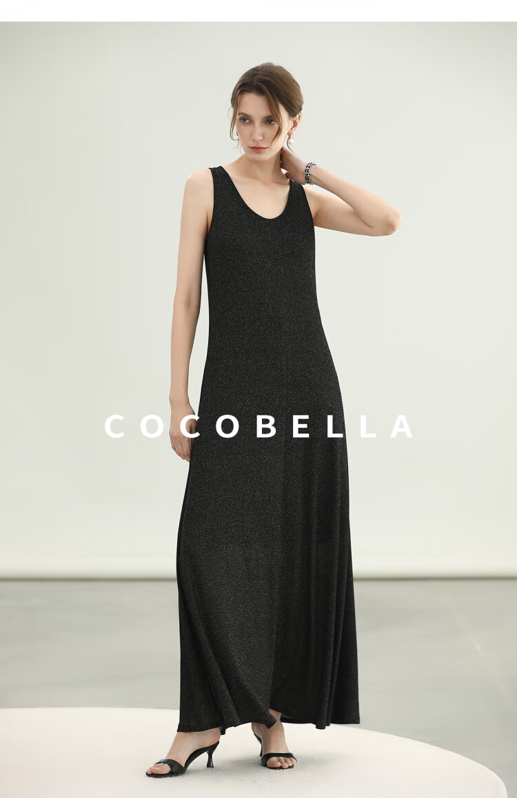 COCOBELLA垂顺银葱针织连衣裙夏无袖背心式知性长裙FR3197-2