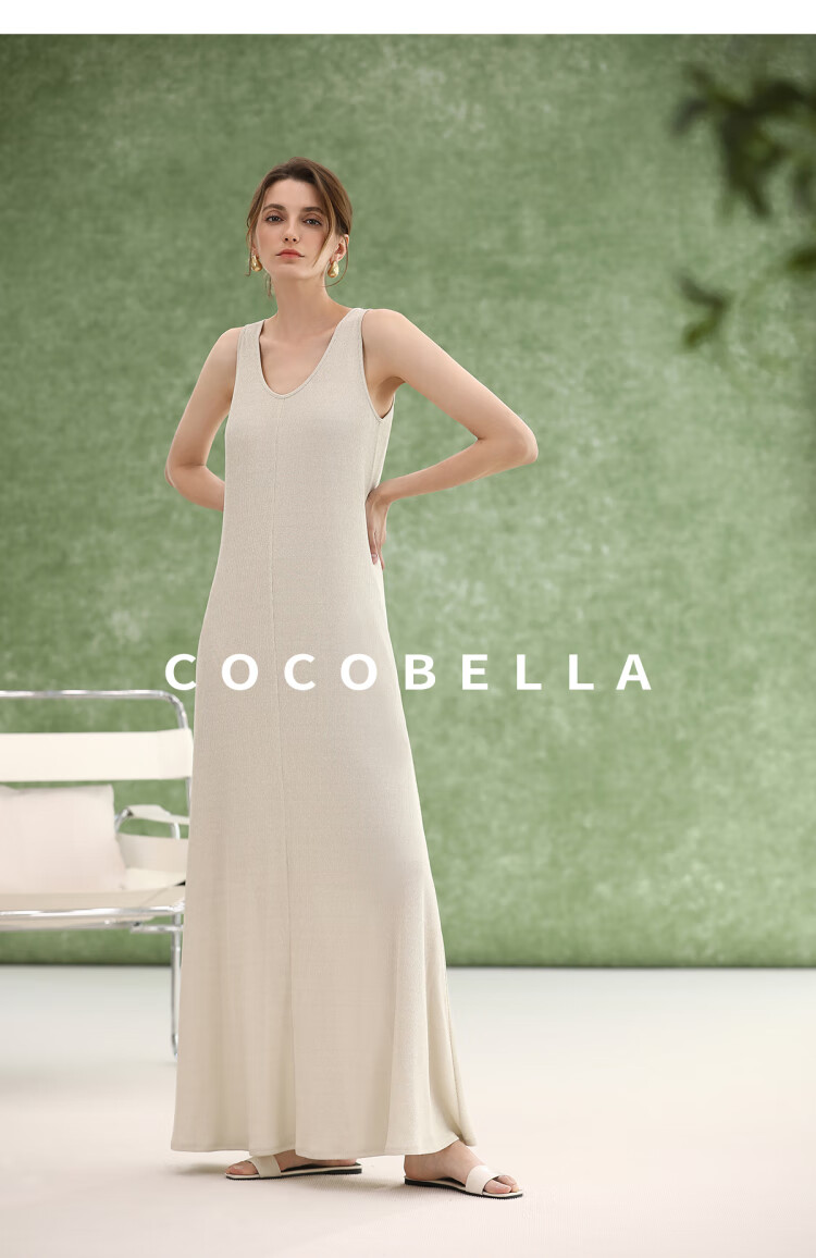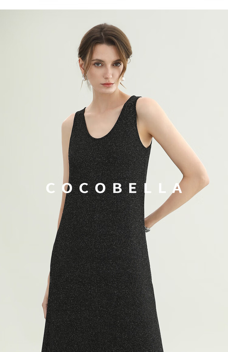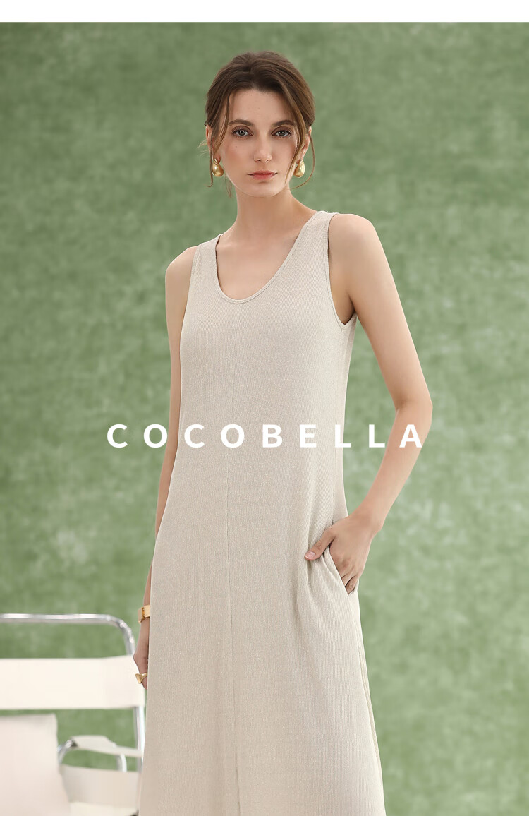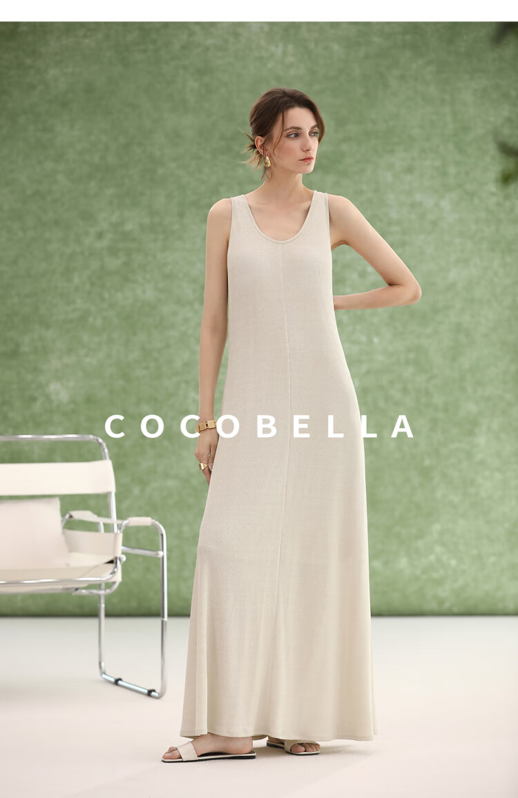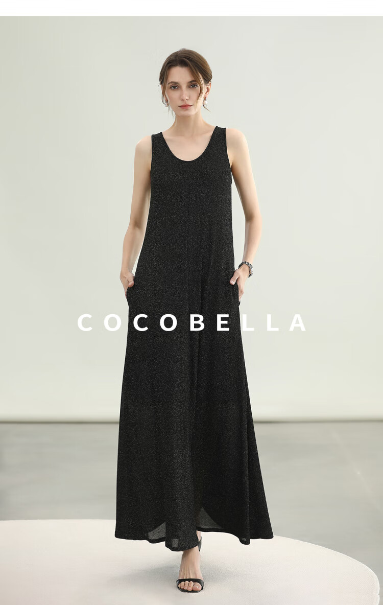 COCOBELLA垂顺银葱针织连衣裙夏无袖背心式知性长裙FR3197-2