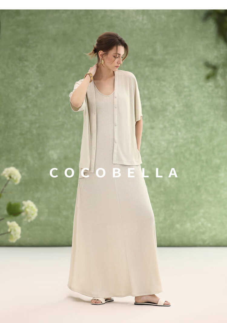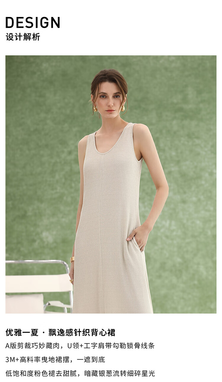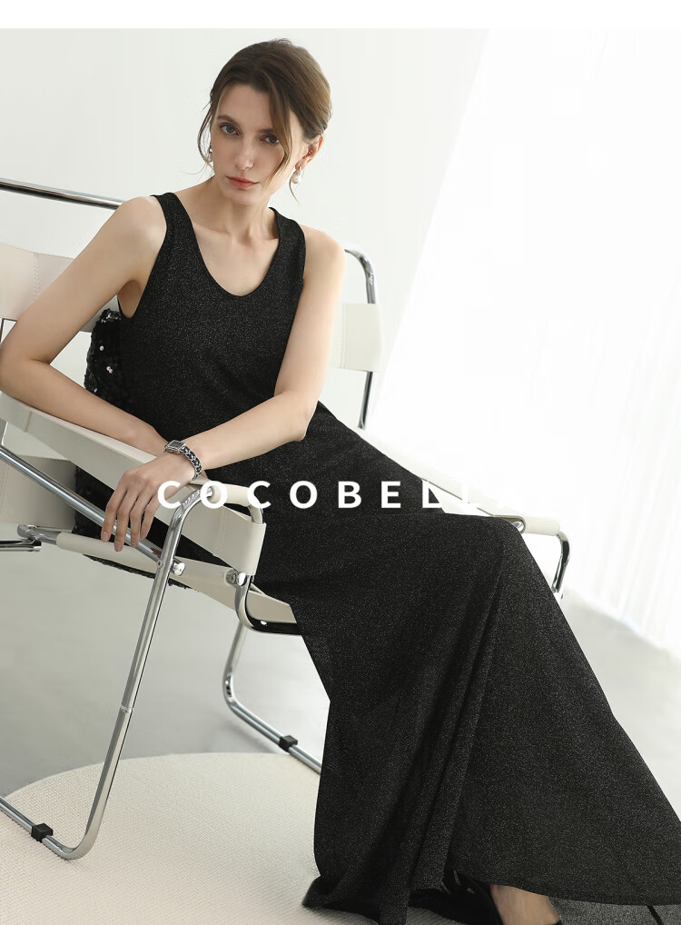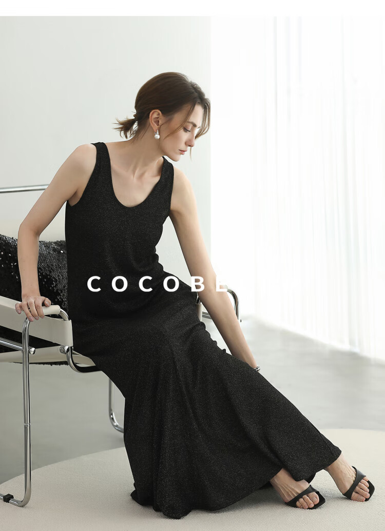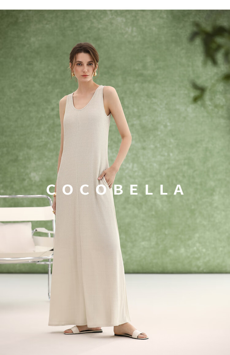 COCOBELLA垂顺银葱针织连衣裙夏无袖背心式知性长裙FR3197-2