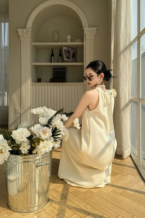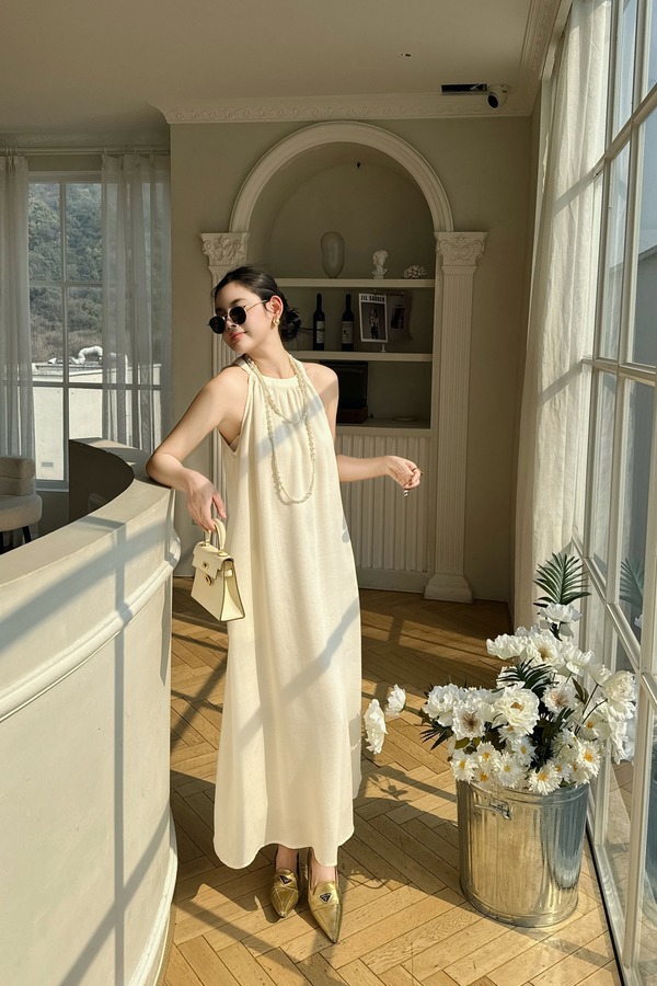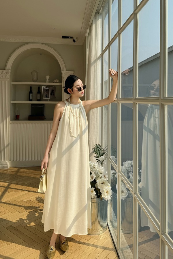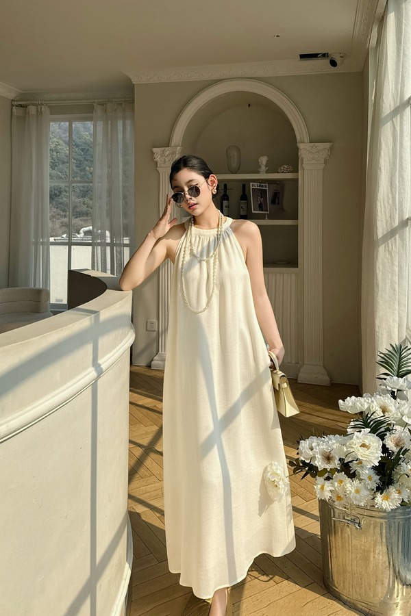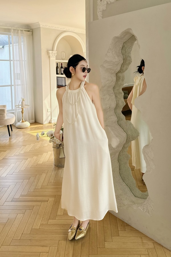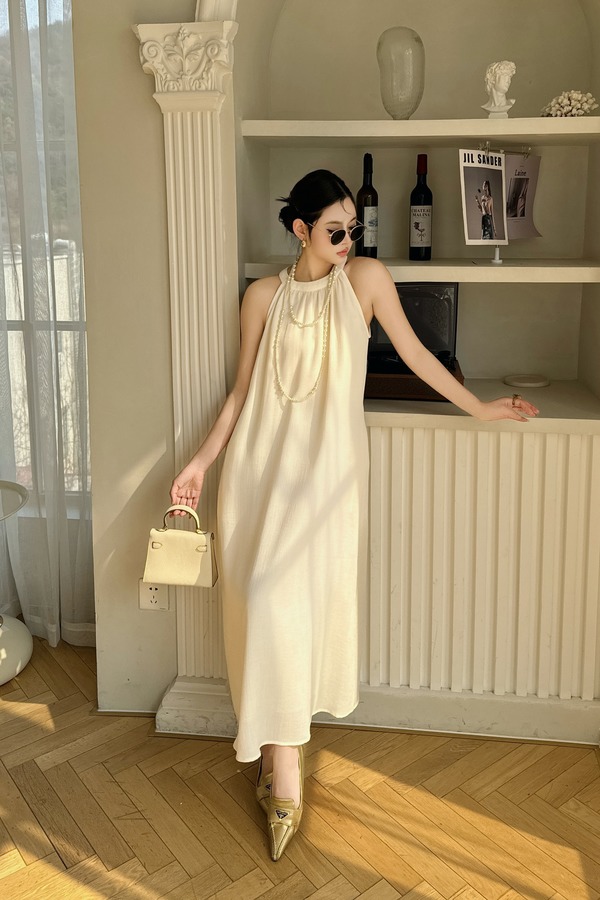 LNNNS 法式气质度假风挂脖无袖连衣裙 22085