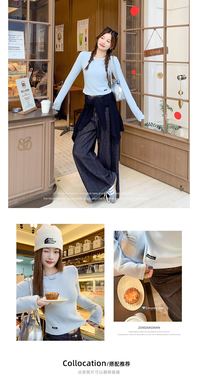 <曾小咸推荐>现货秒杀 !微信超特价!韩系蓝色圆领短款磨毛长袖 日常109.99 立减60 秒杀49.99!!