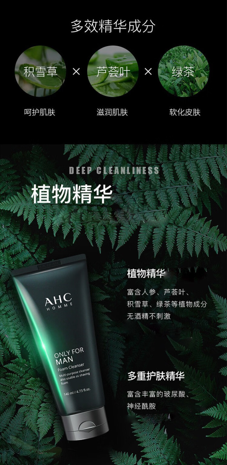AHC水乳套装男士水乳三件套洗面奶水乳护肤品补水保湿套盒
