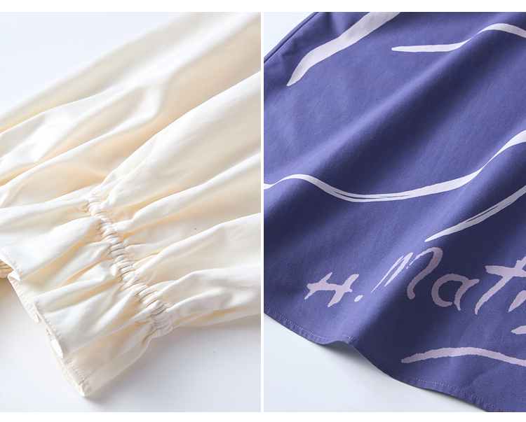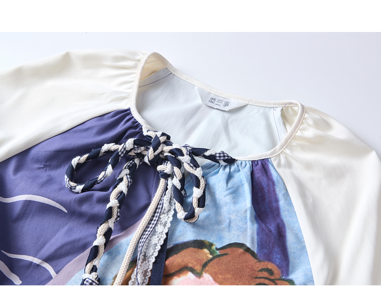 两三事不拘心迹小清新印花领带v领长袖衬衫女宽松衬衣