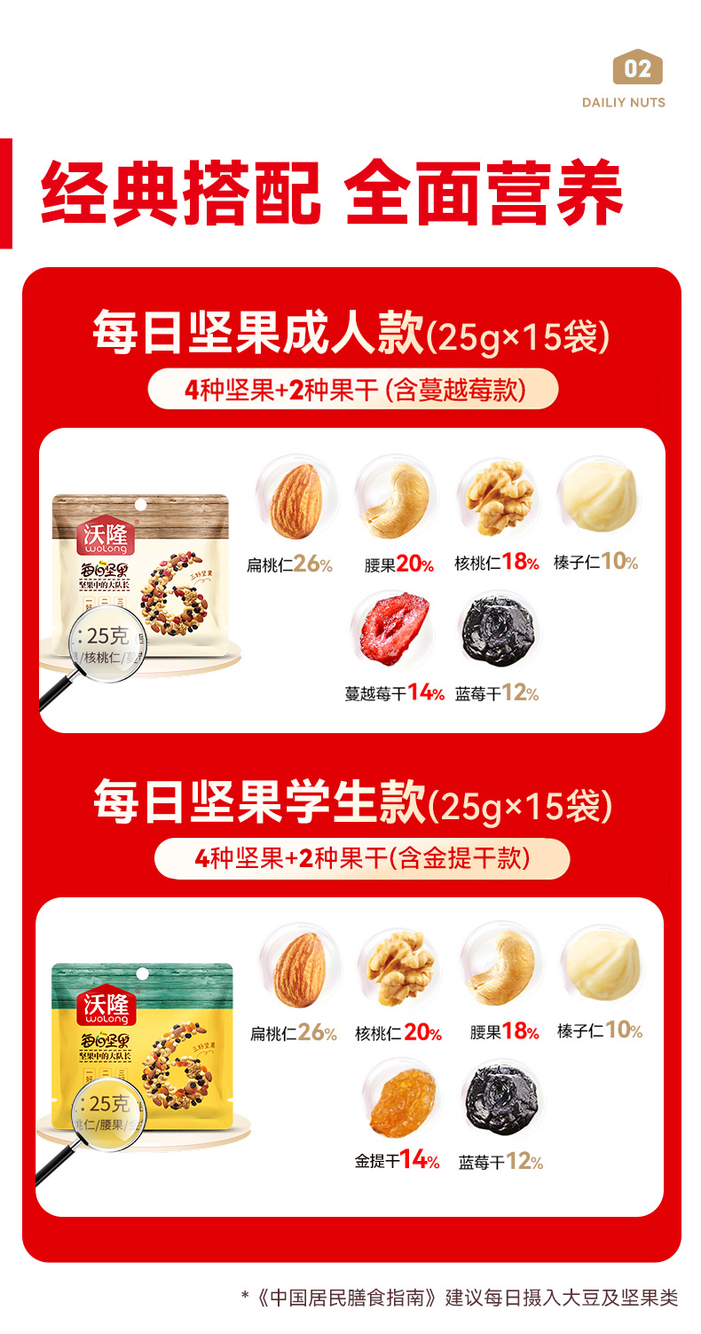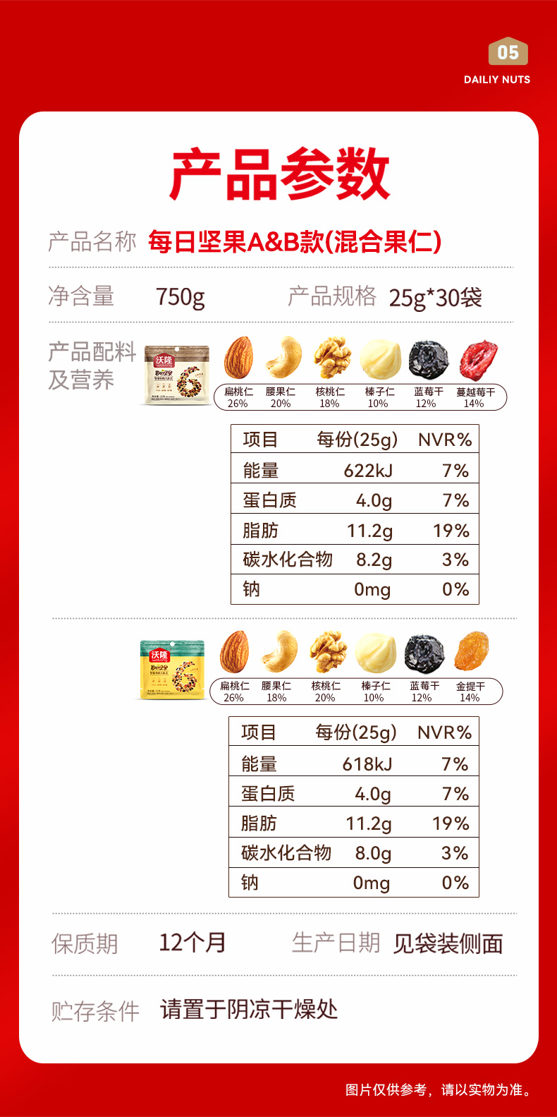 沃隆 每日坚果 家庭款 A+B款 25g*30袋 共750g