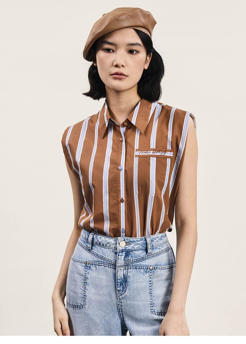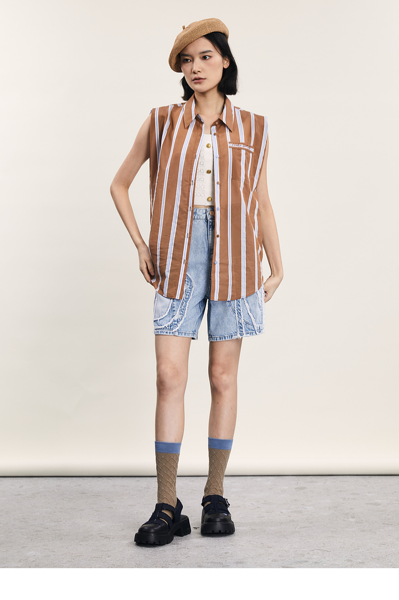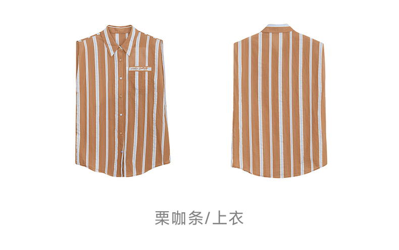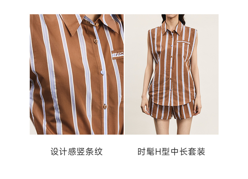 谜底套装女2024年夏季新品复古文艺风竖条纹衬衣+短裤242MTZ0505