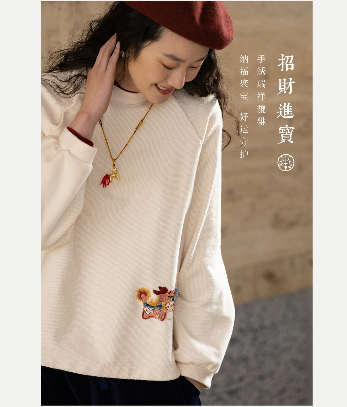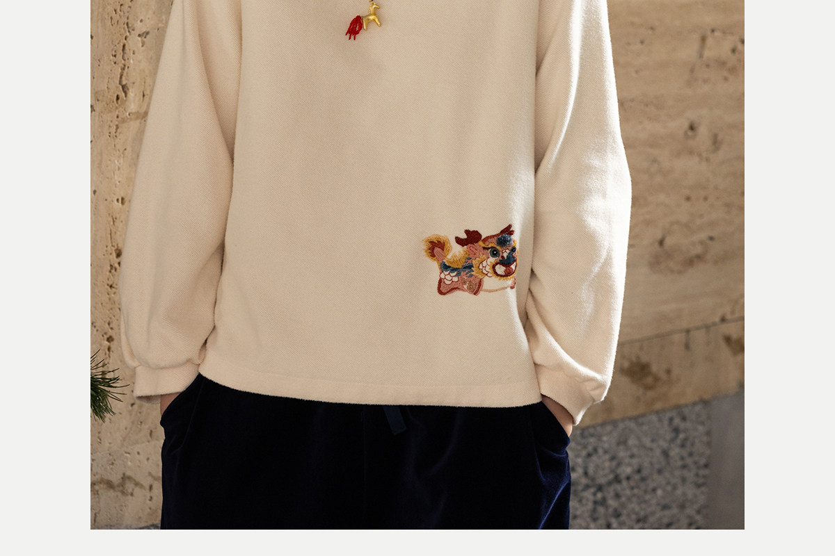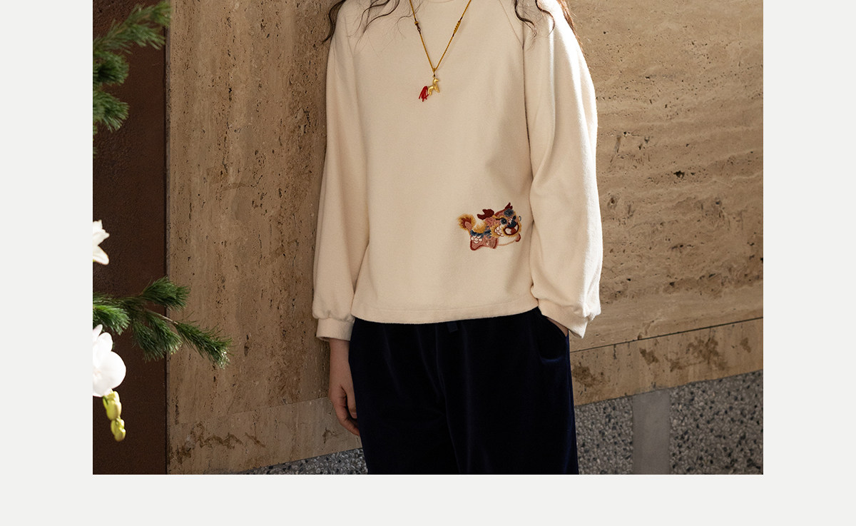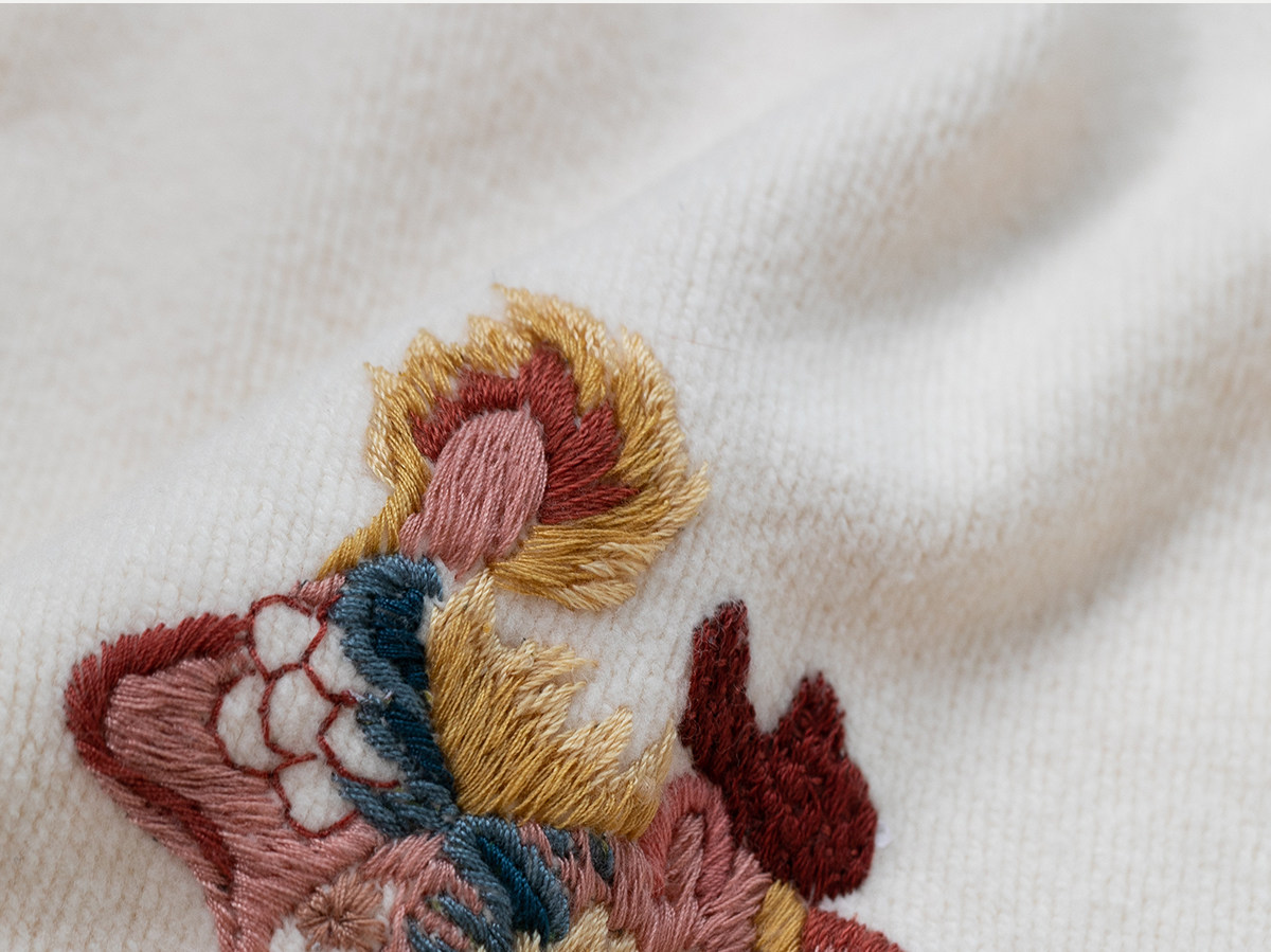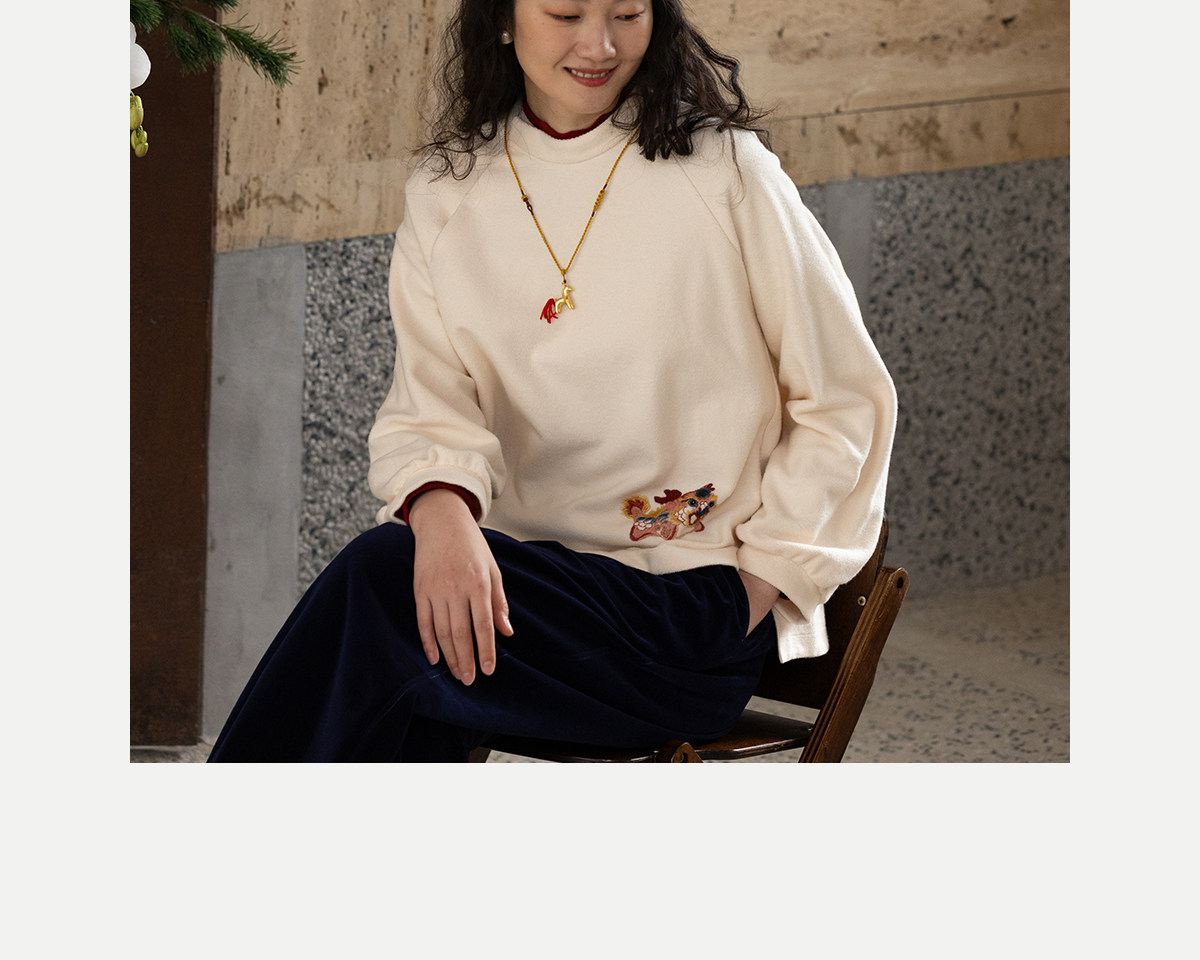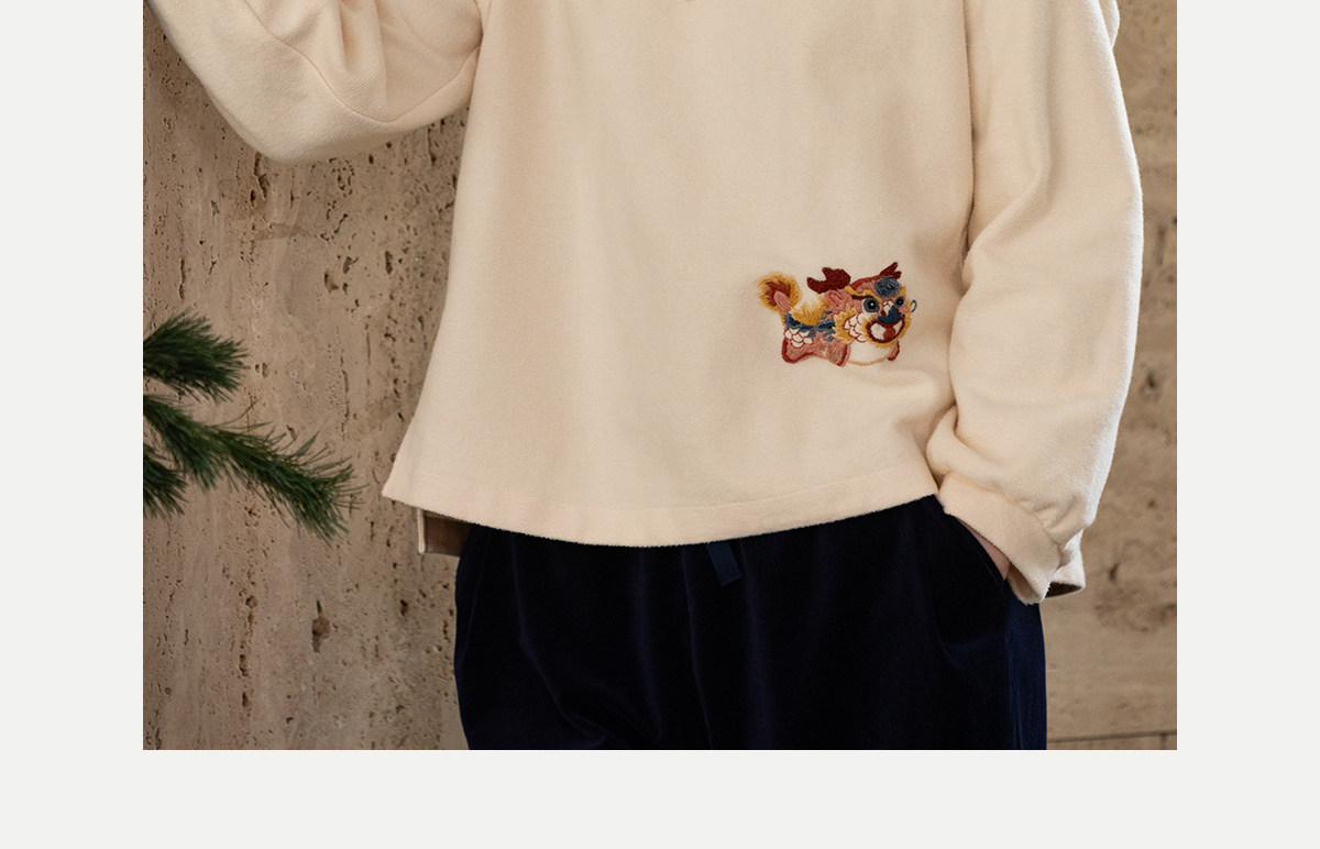 牧衣游原创 32支手工刺绣棉质卫衣春季新款宽松百搭文艺上衣 听溪