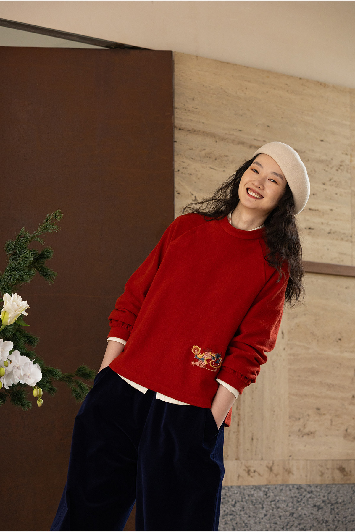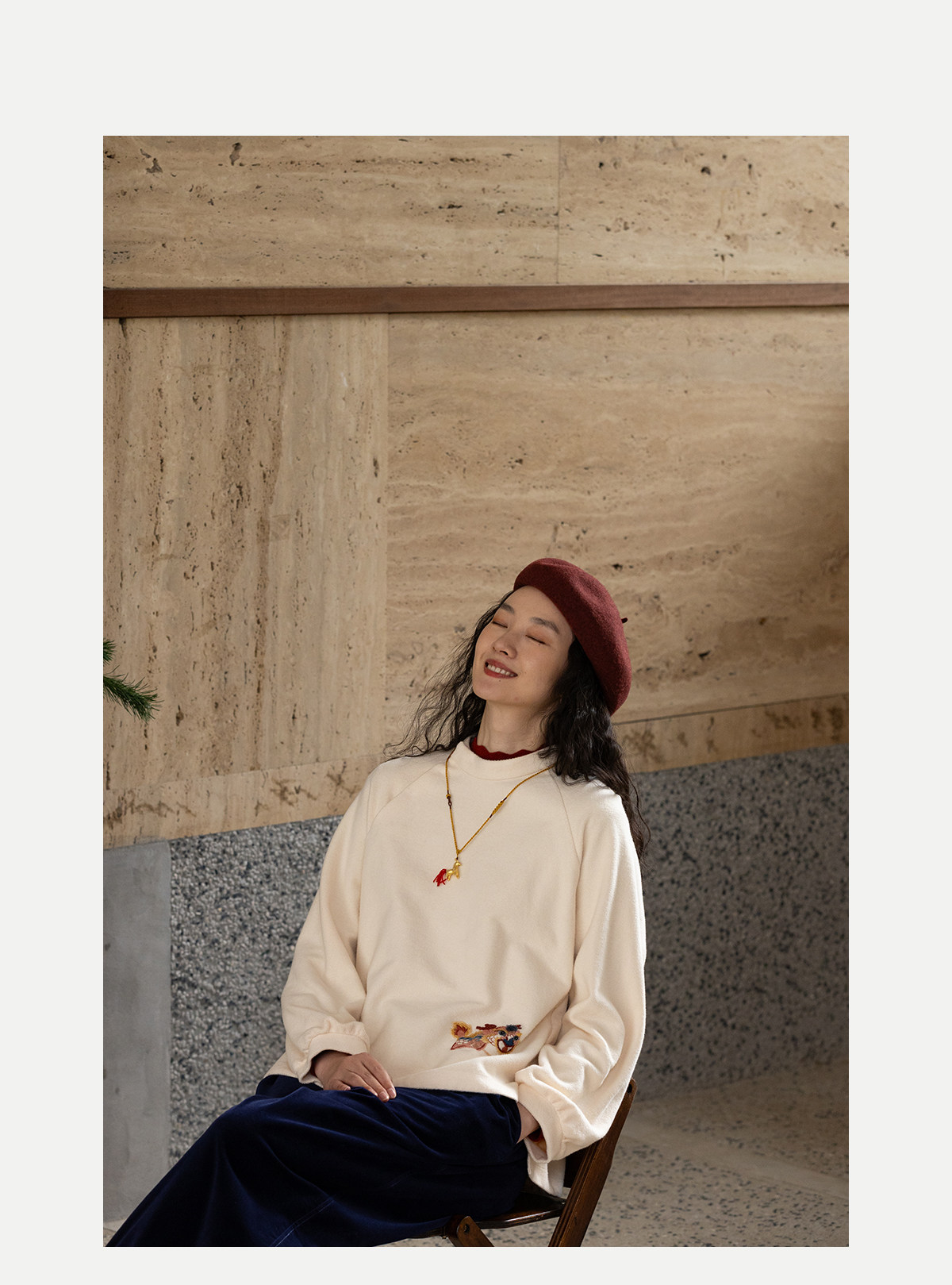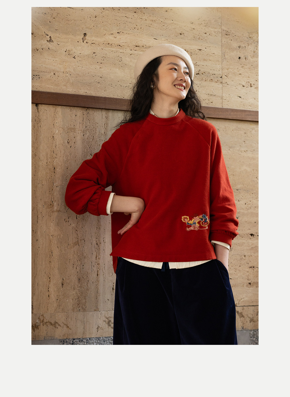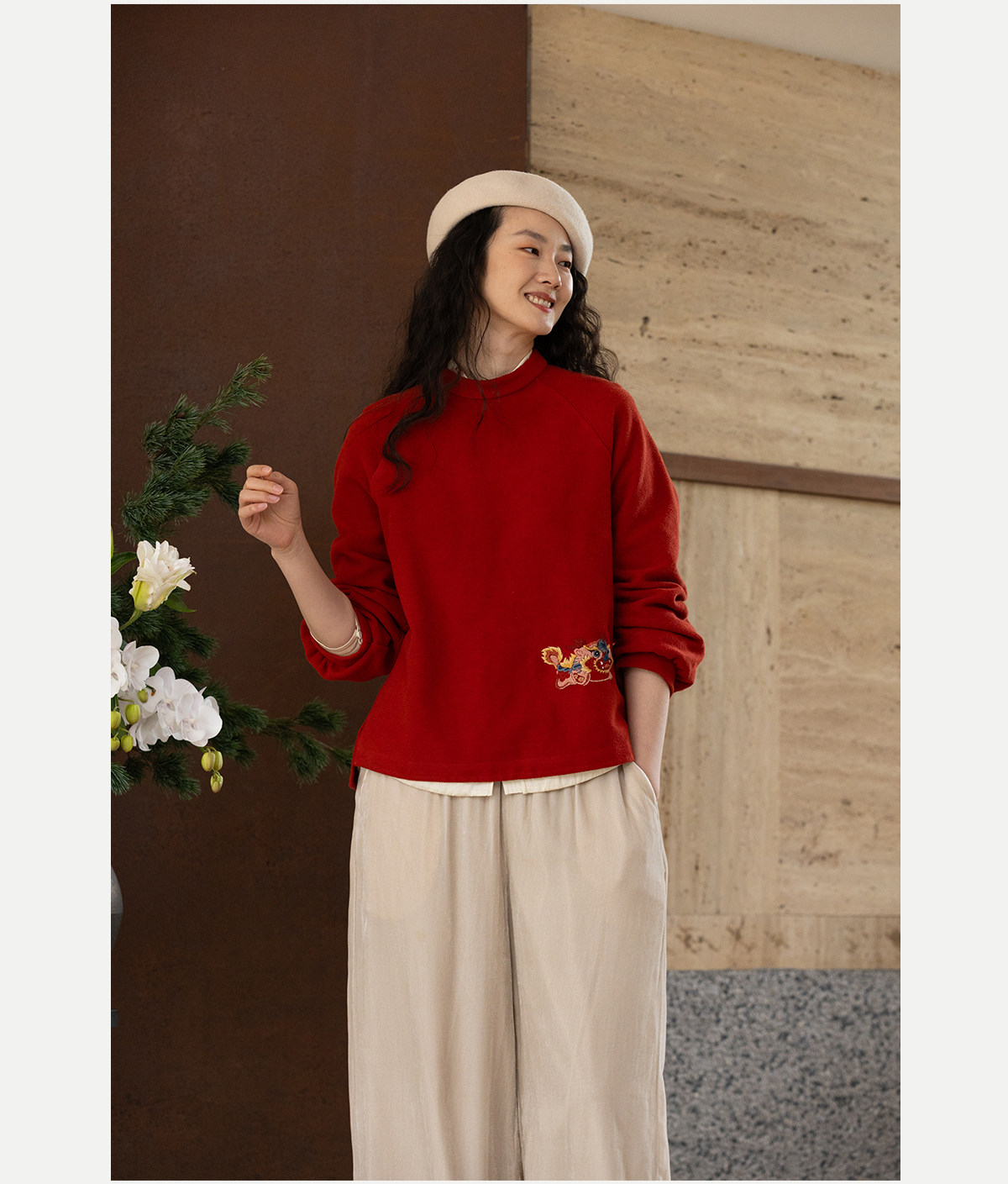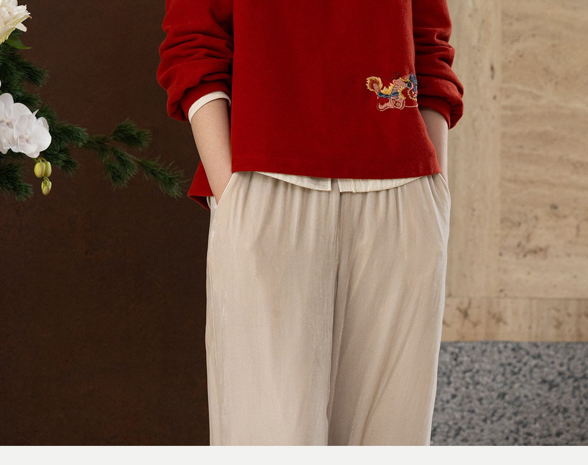 牧衣游原创 32支手工刺绣棉质卫衣春季新款宽松百搭文艺上衣 听溪