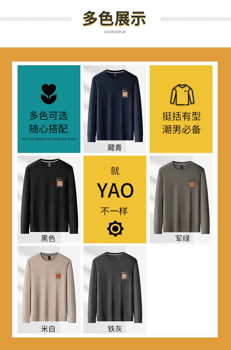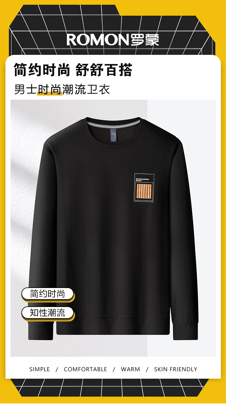 【肌理提花】罗蒙春秋男装卫衣贴布假口袋卫衣男士舒适休闲圆领长袖t恤男上衣