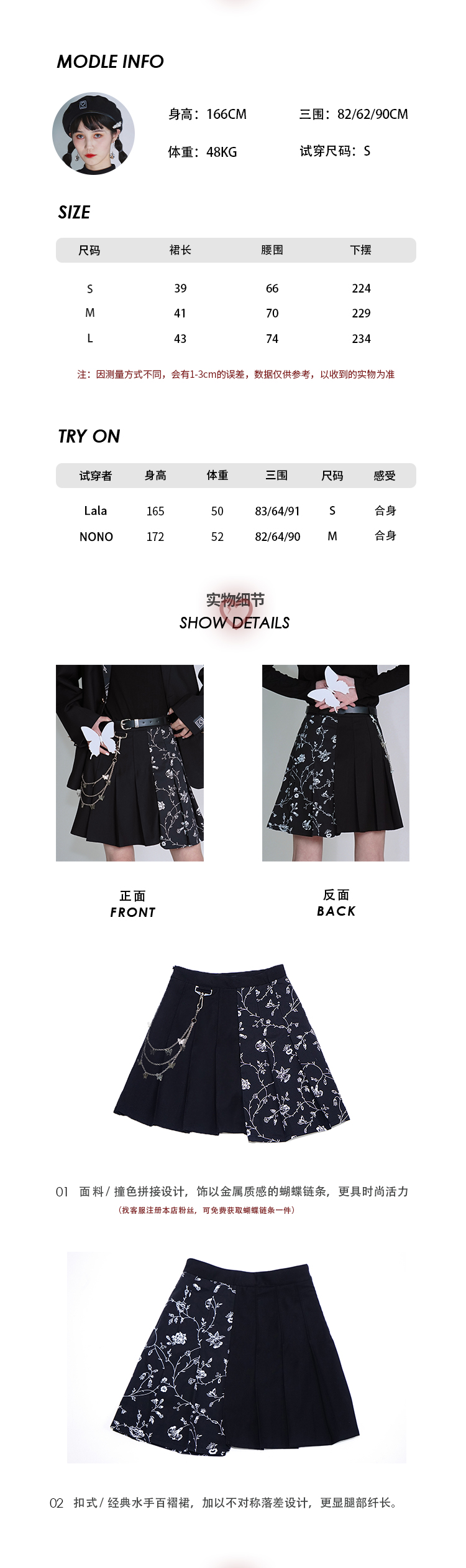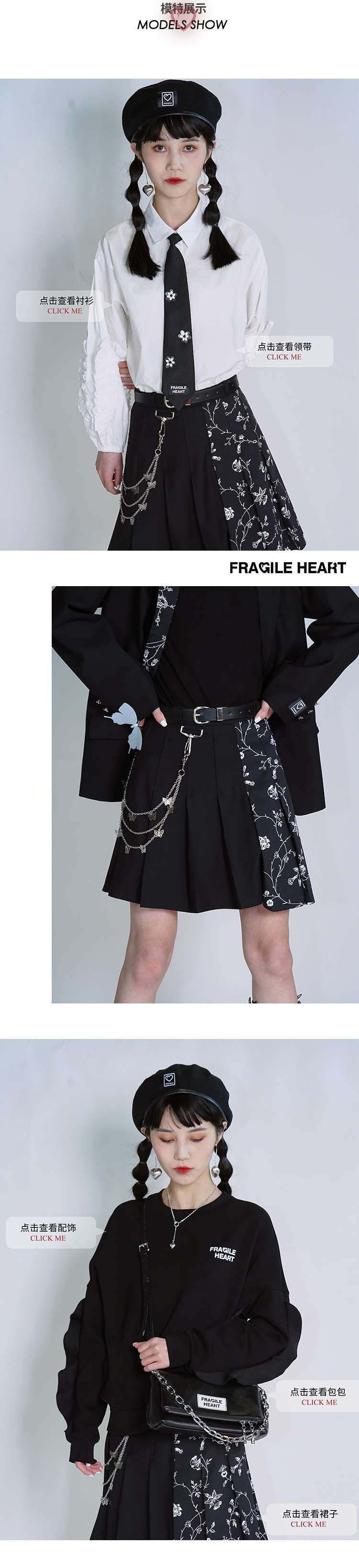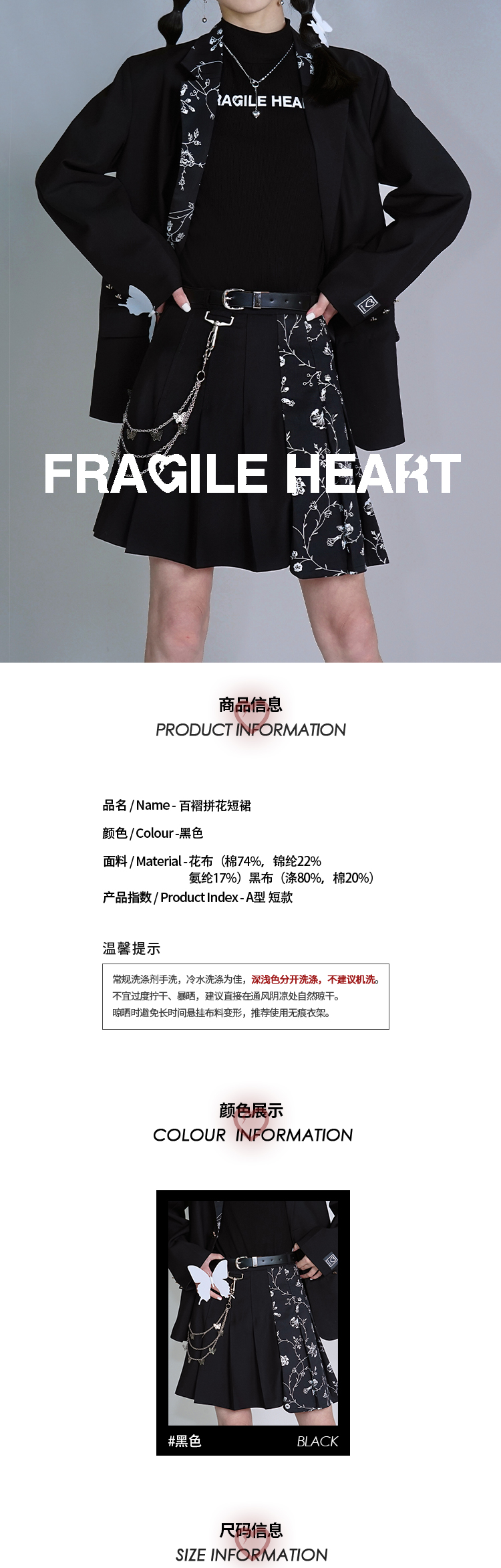 FragileHeart 原创设计感易碎商店新款少女拼接百褶裙女春a字短裙